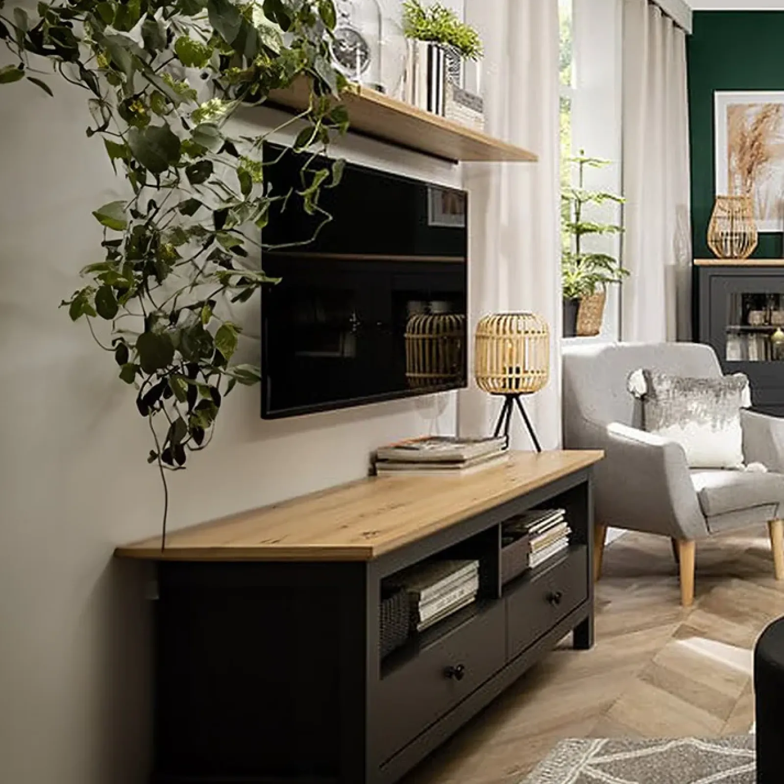 Mobile porta TV 137×59cm 2 cassetti nero grafite rovere chiaro Holga