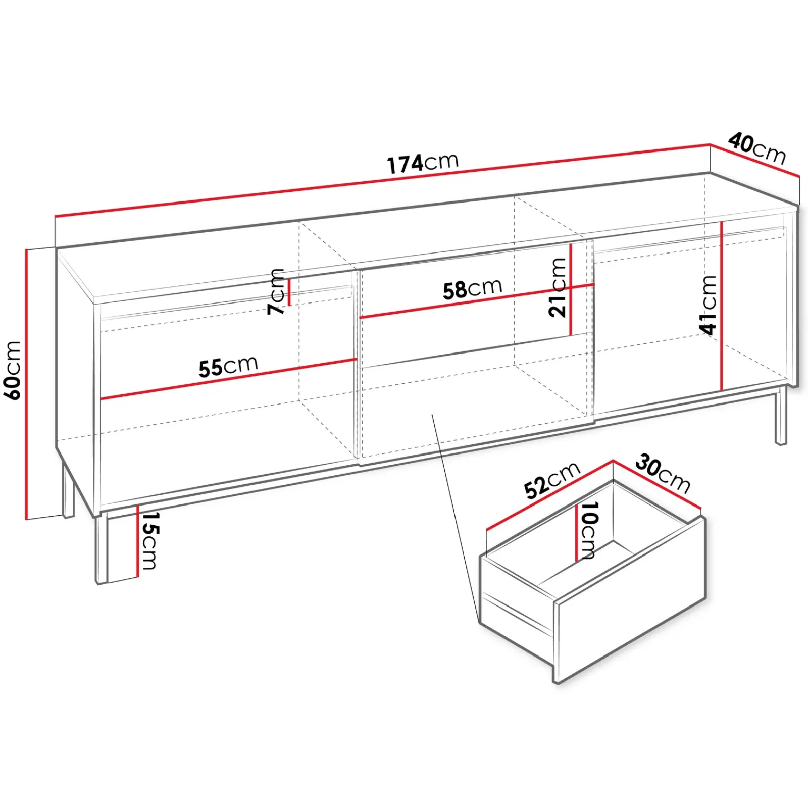 | Dimensioni | L.154 x H.55 x P.40 cm |