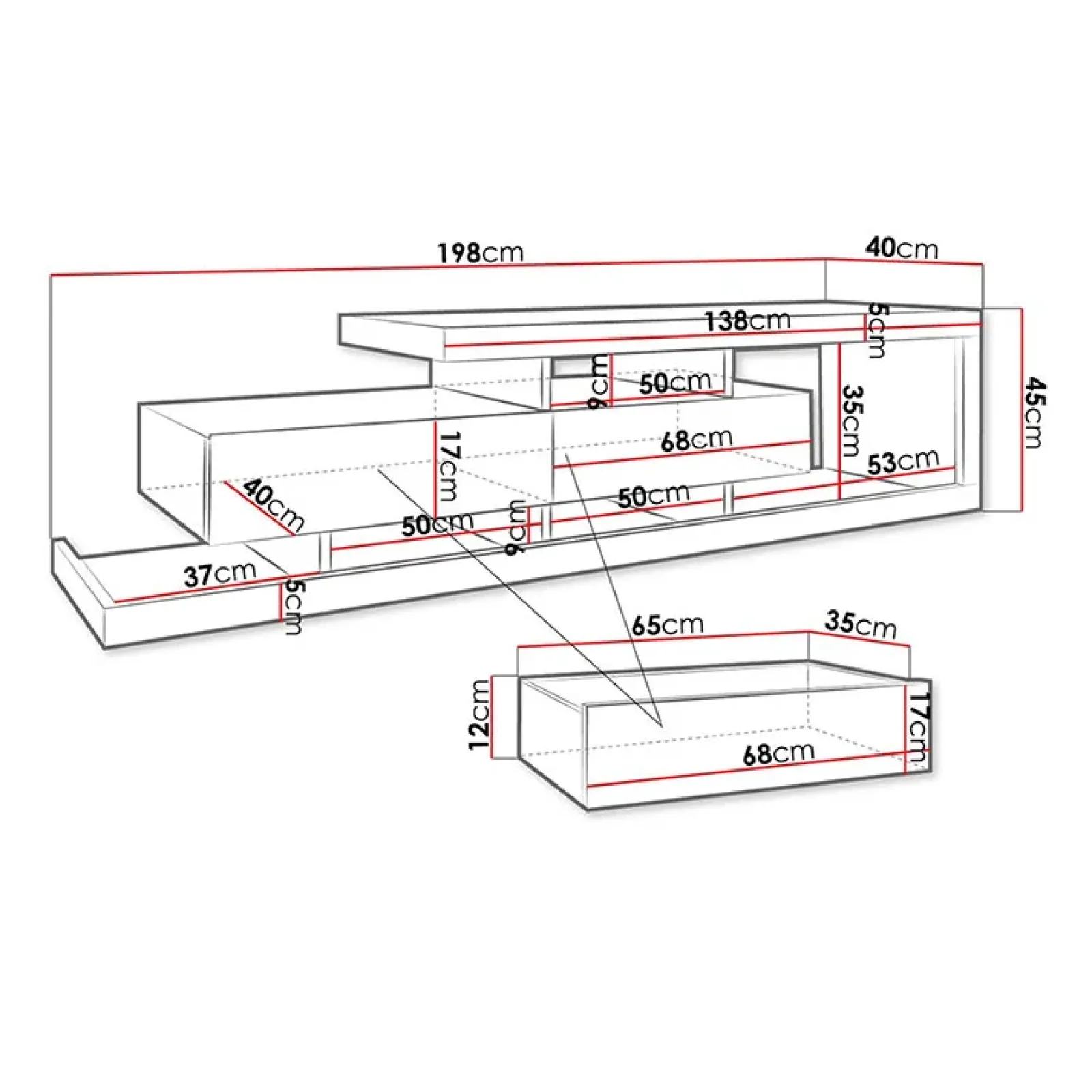 | Dimensioni | L.198 x H.45x P.40 cm |