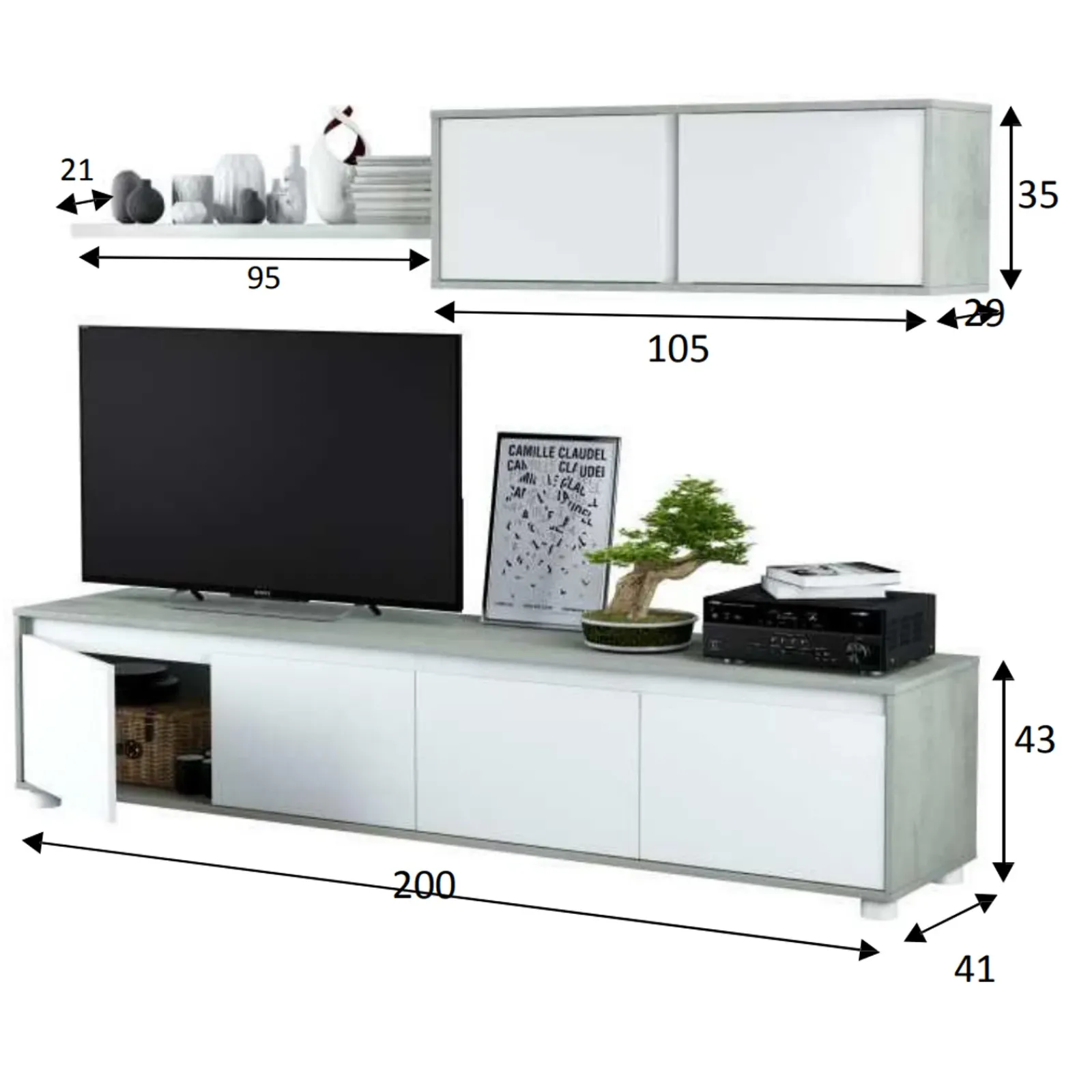 - dimensione base porta TV: L.200 x P.41x H.43 cm