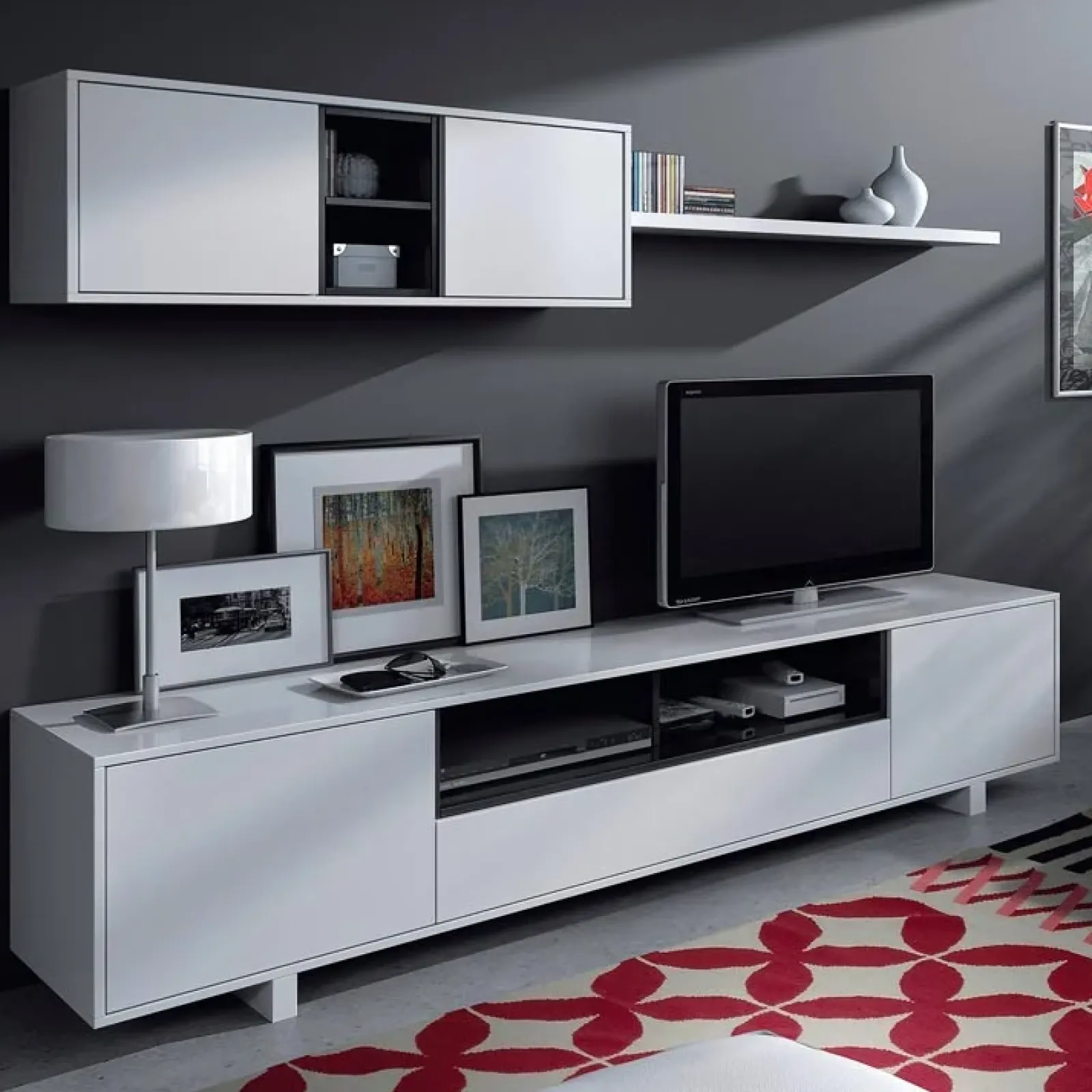 Parete attrezzata porta tv Belle bianco antracite: dal design semplice e lineare, questa soluzione saprà arredare con stile il tuo soggiorno!