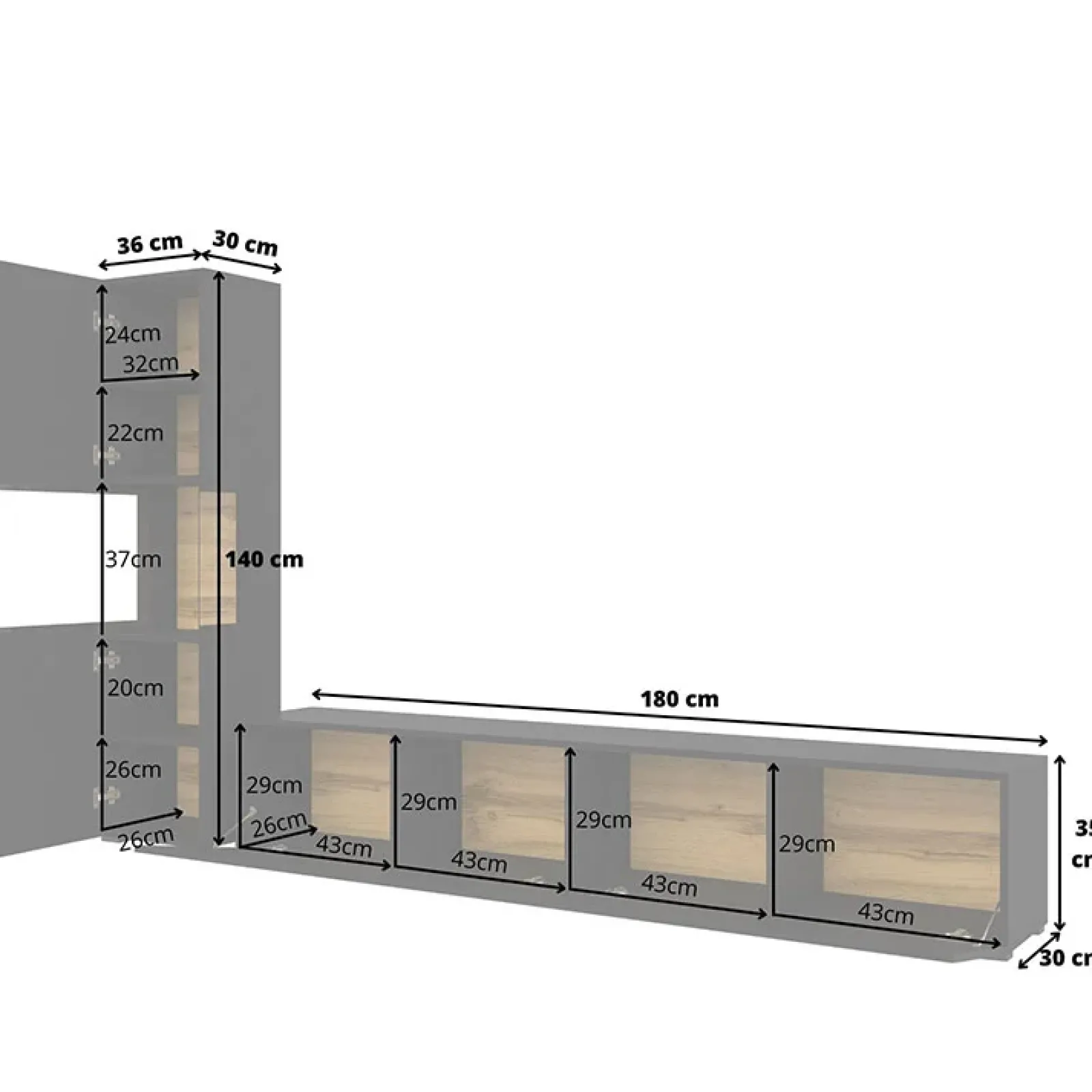 - Dimensioni mobile porta tv: L.180 x H.35 x P.30 cm