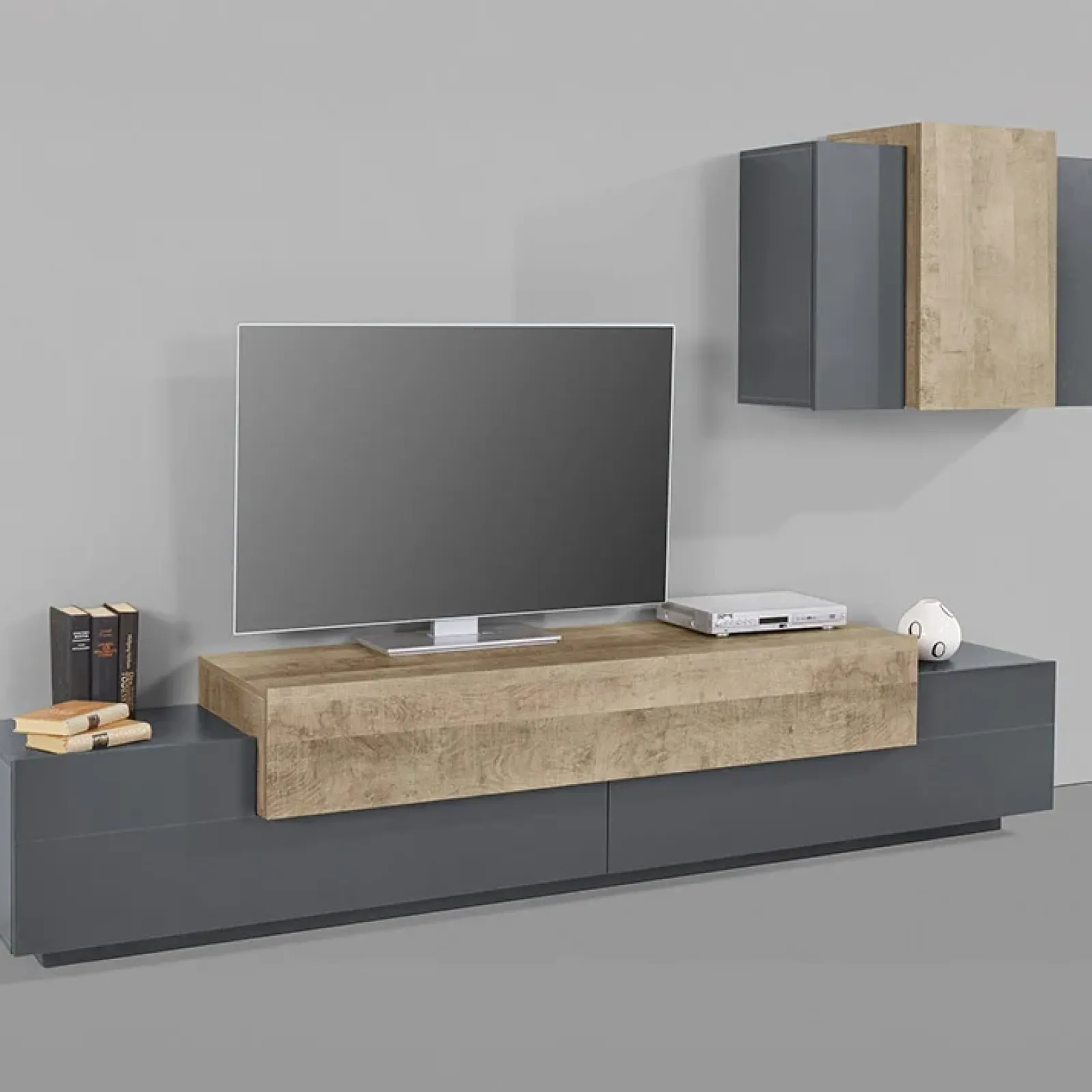 Parete attrezzata 240x180cm moderna antracite rovere Milos Gihome