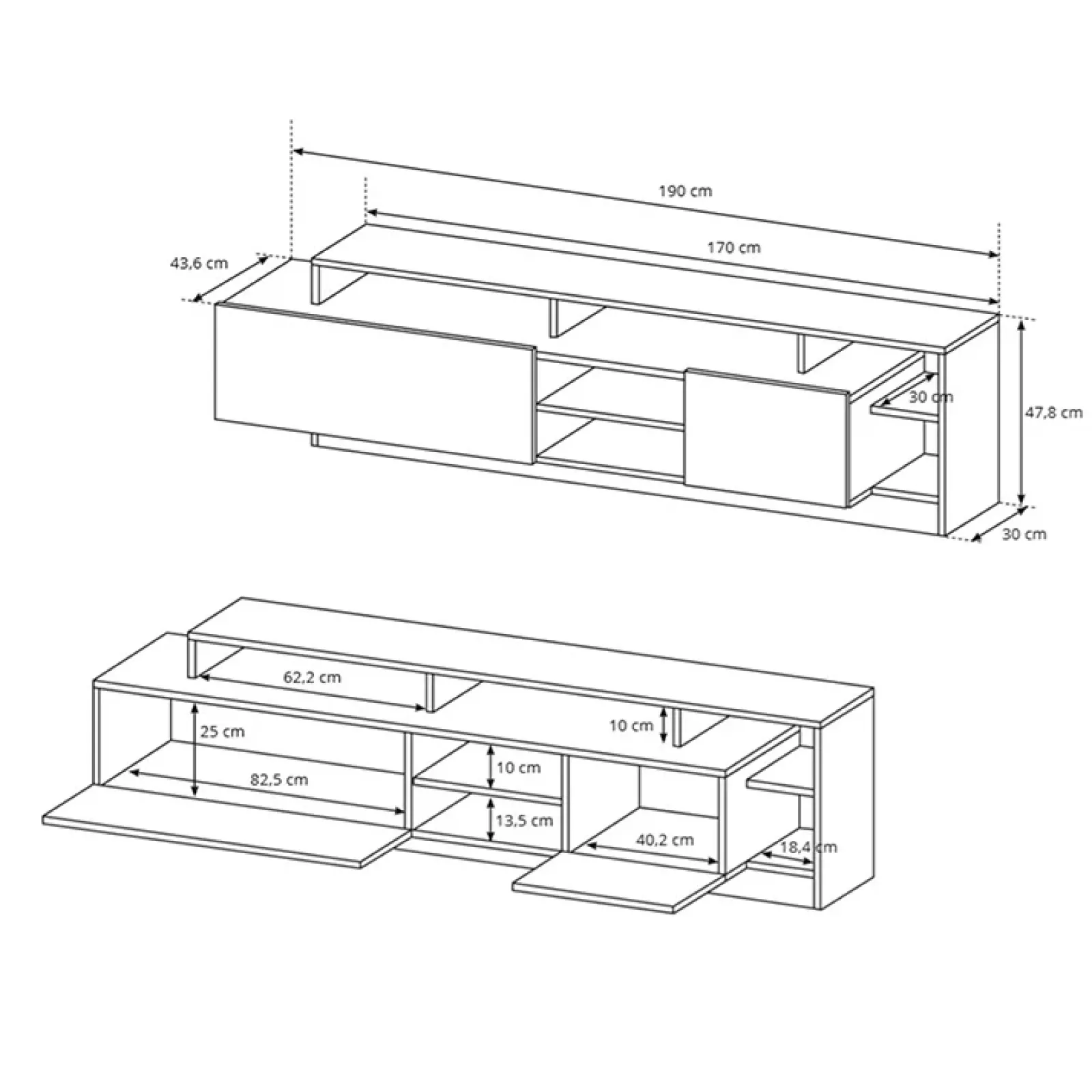 - dimensioni base tv (x1): L.190 x P.43,6 x H.47,8 cm