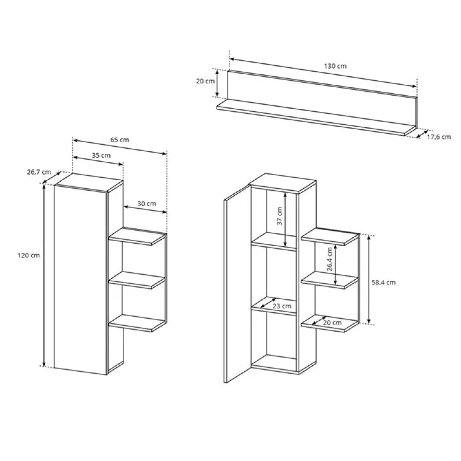 - dimensioni mensola (x1): L.130 x P.17,6 x H.20 cm