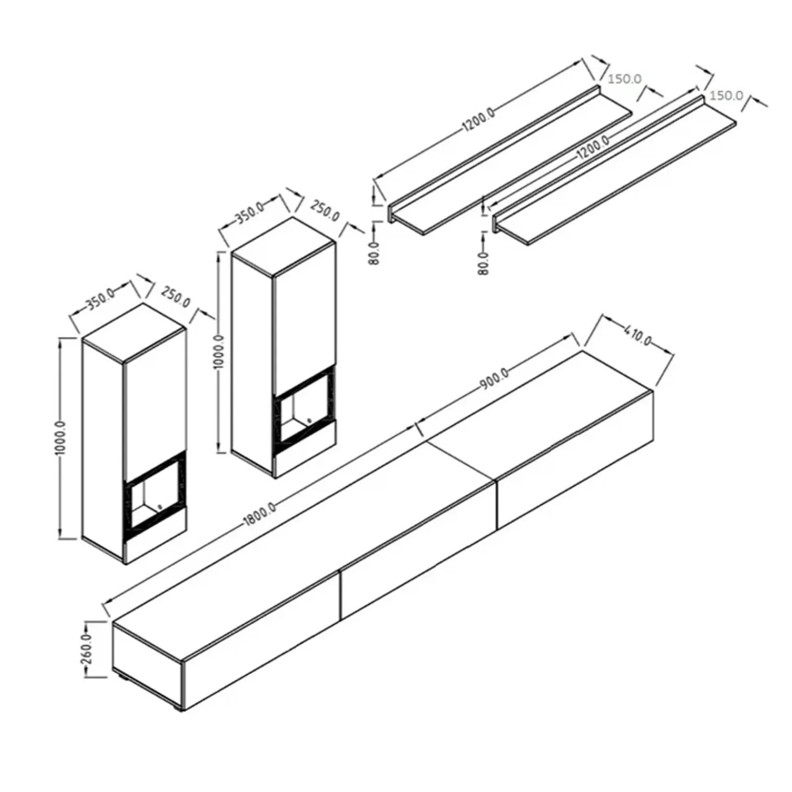 - dimensioni base (x1): L.270 x H.26 x P.41 cm