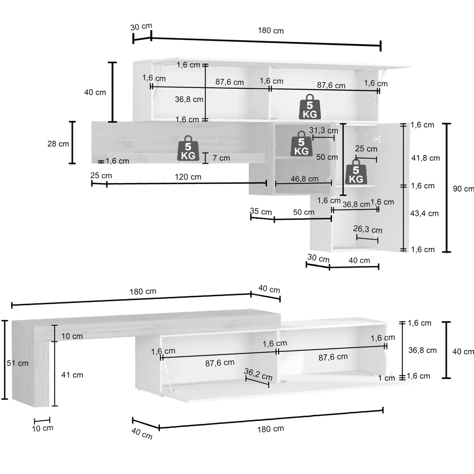 | Dimensioni | L.180 x H.51 x P.40 cm |