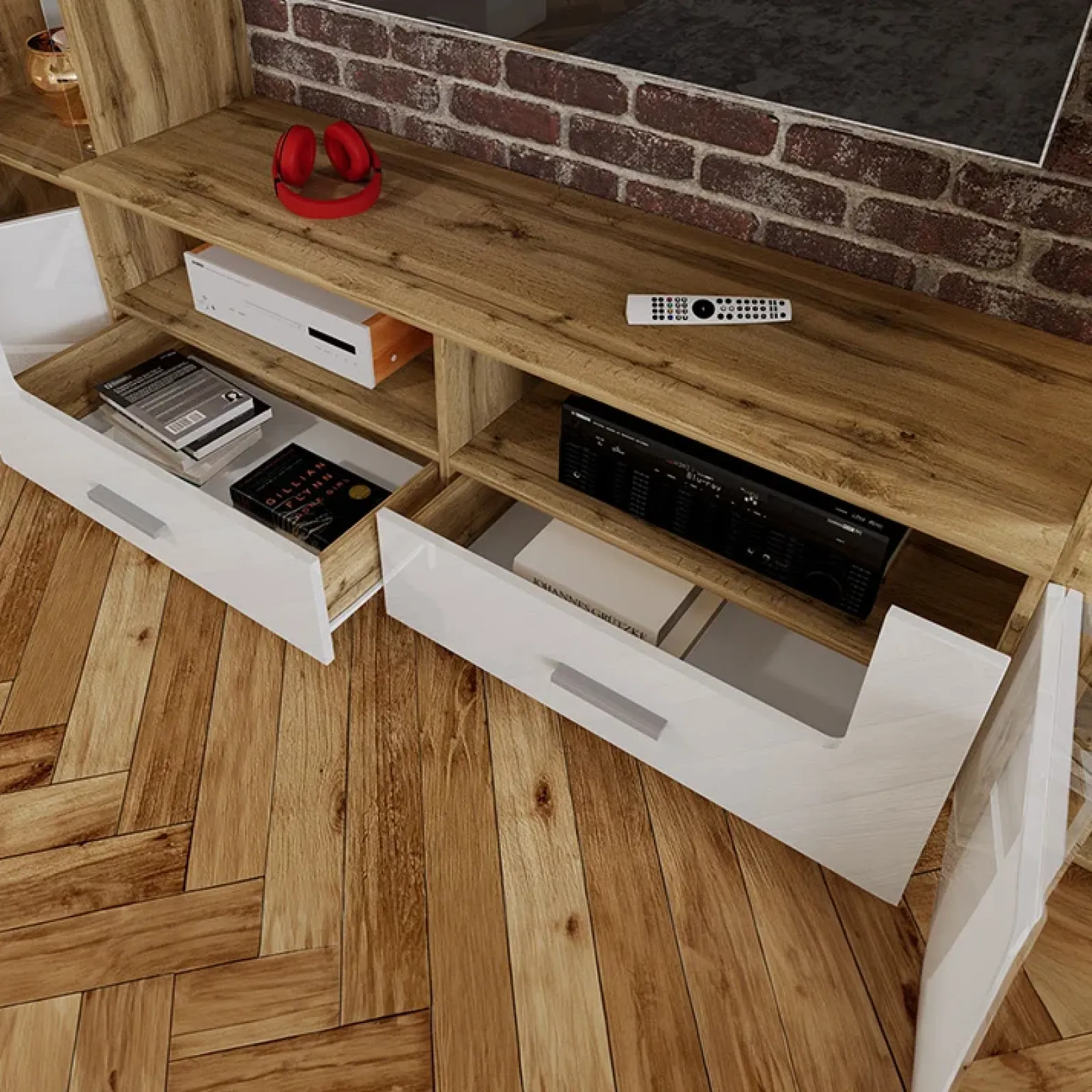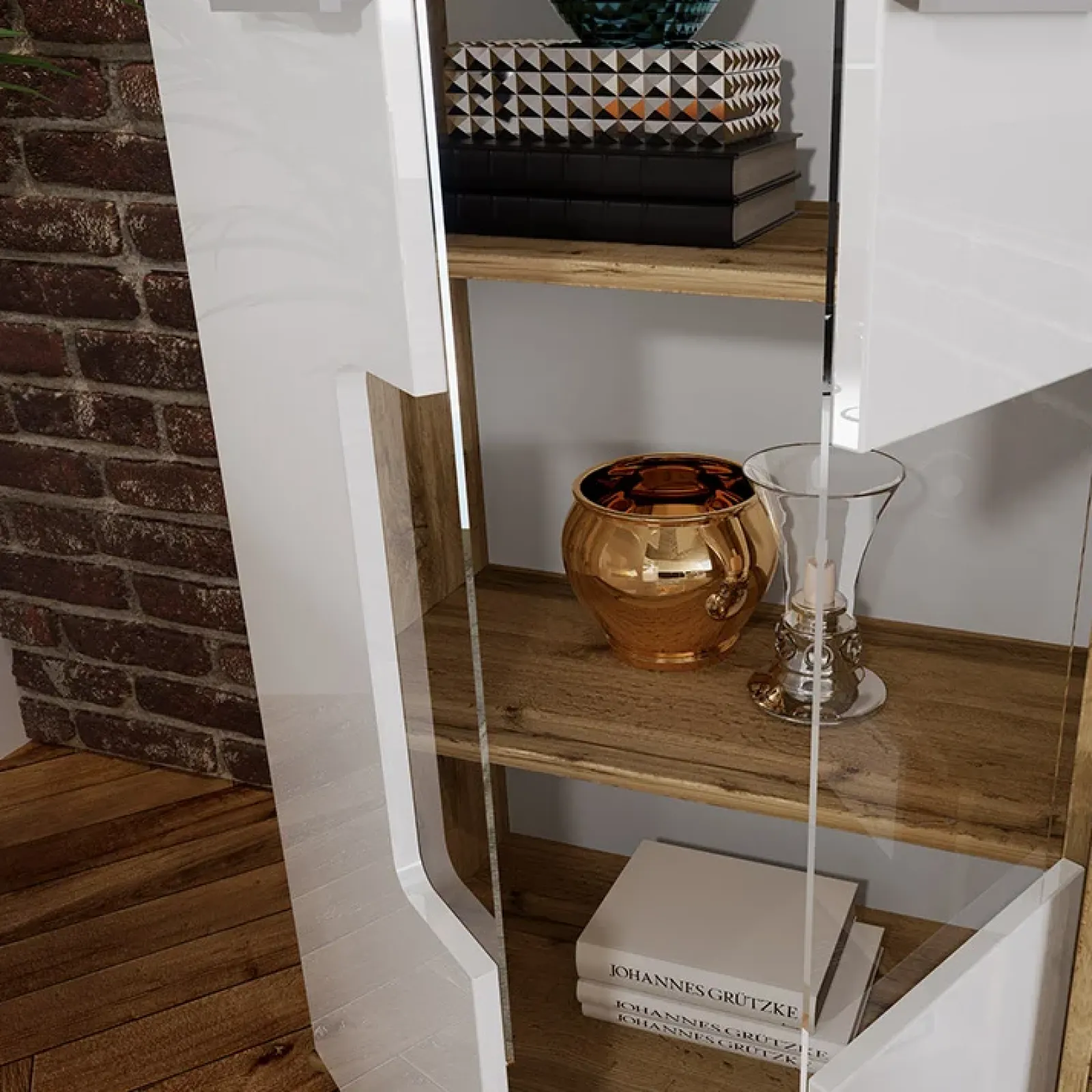 - Finitura: bianco lucido/rovere