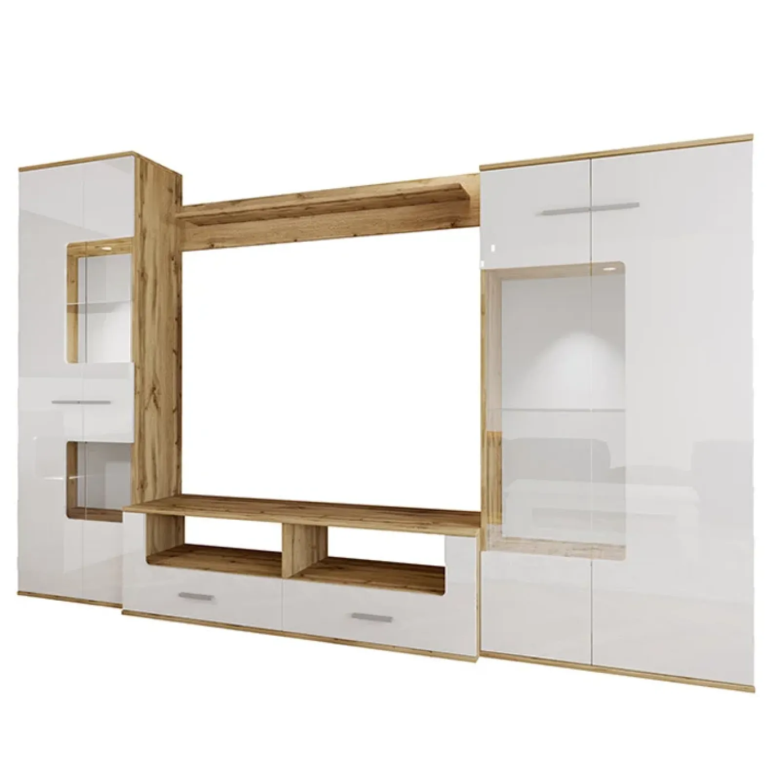 Parete attrezzata 280x185cm soggiorno bianco lucido rovere Wall