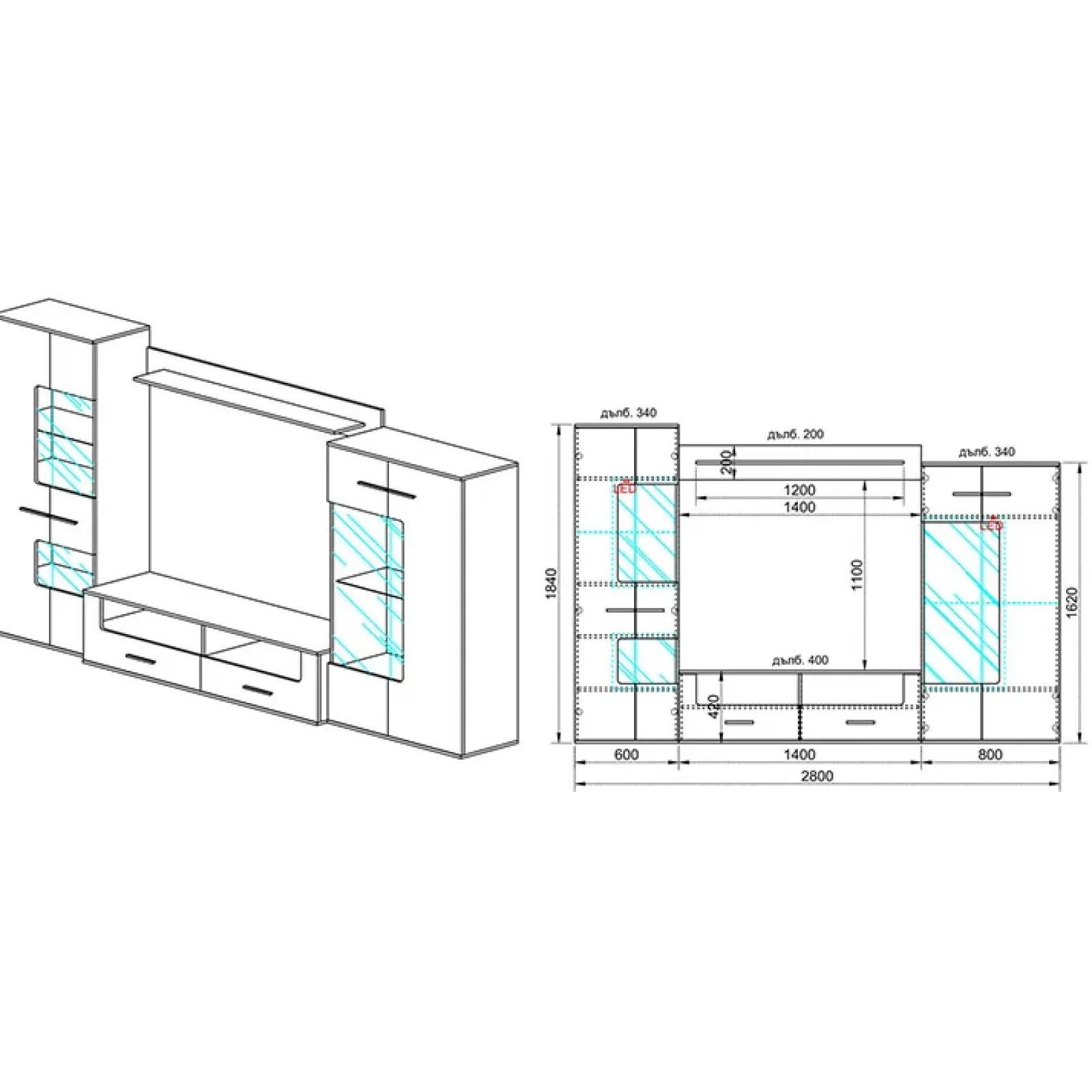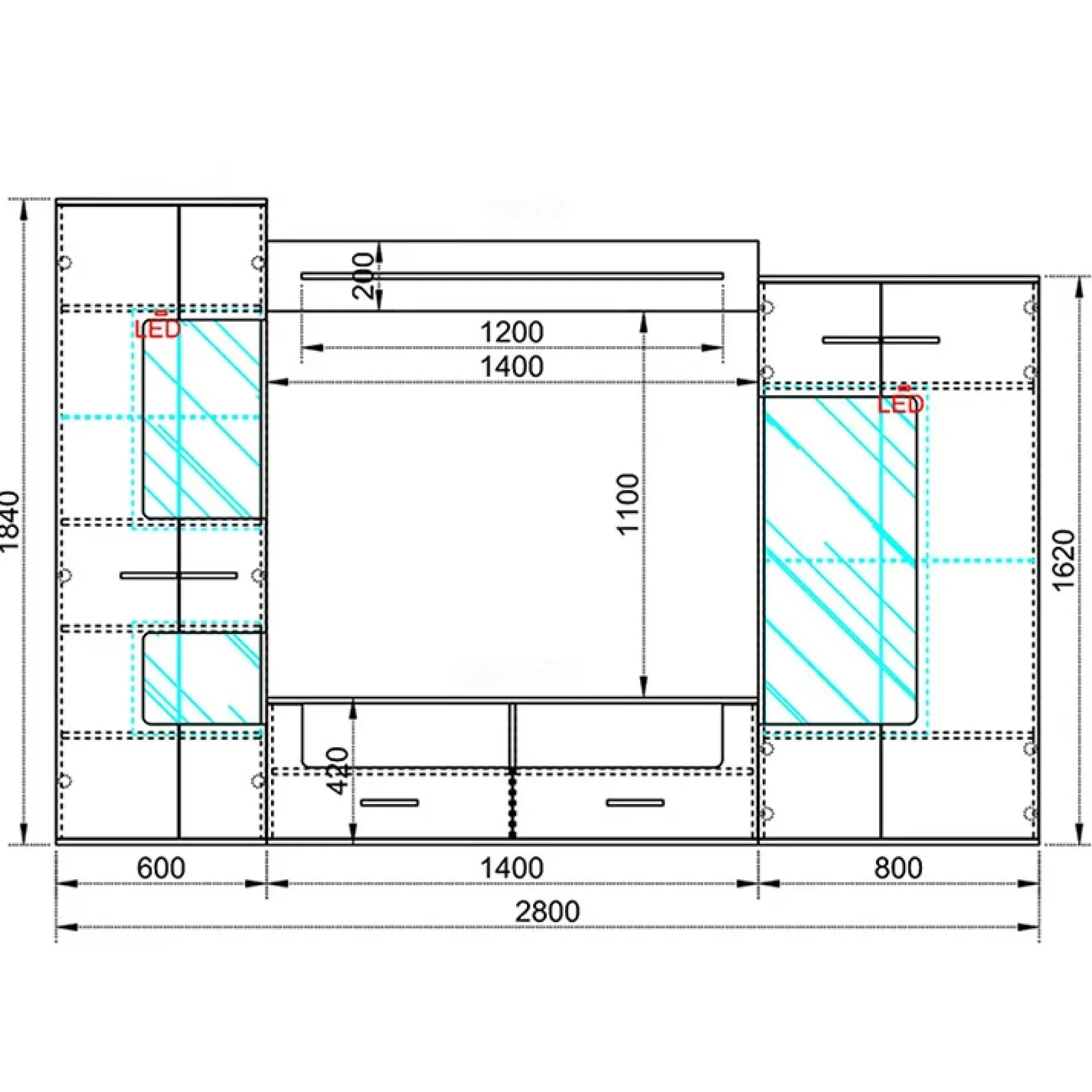 - Dimensioni: L.280 x H.185 x P.40 cm