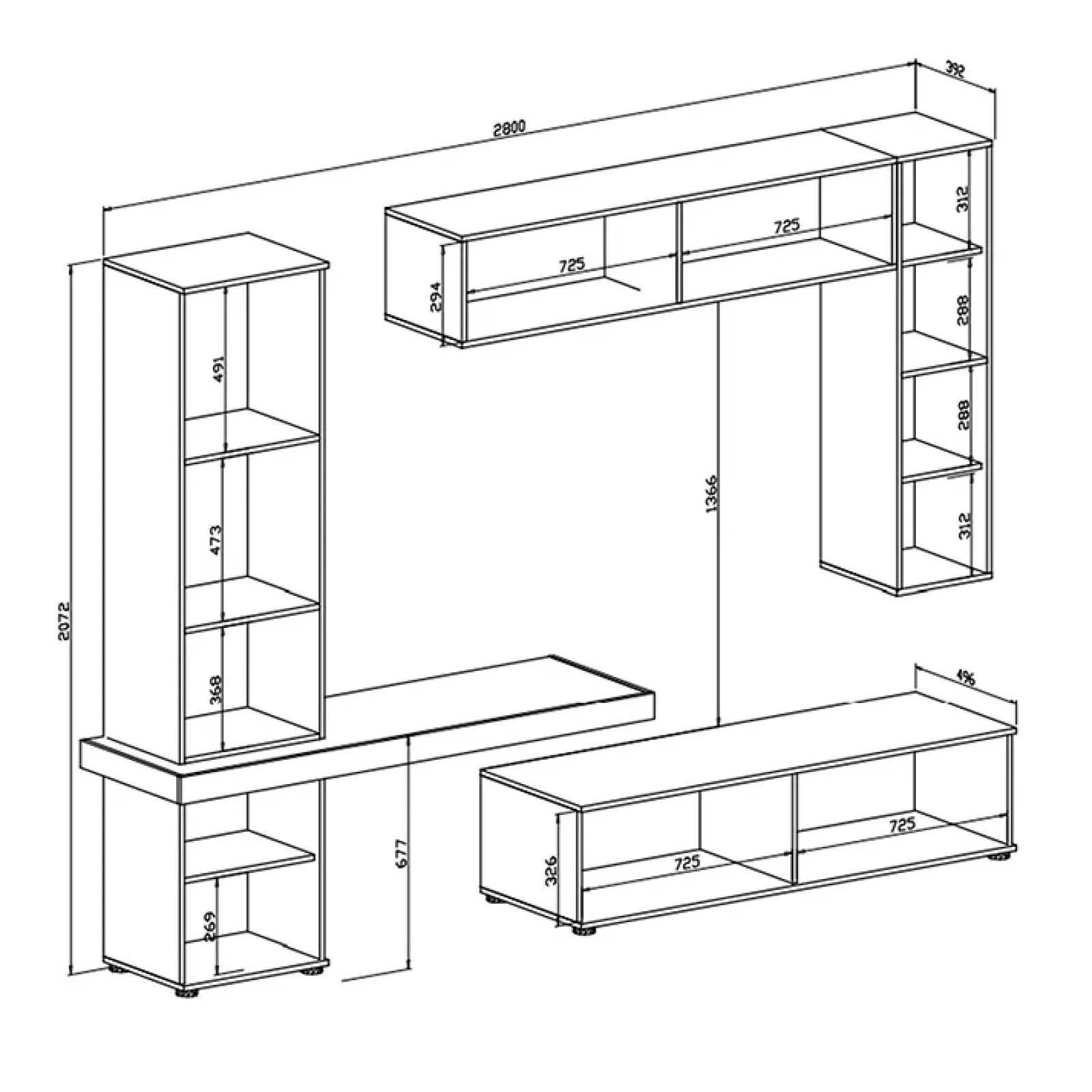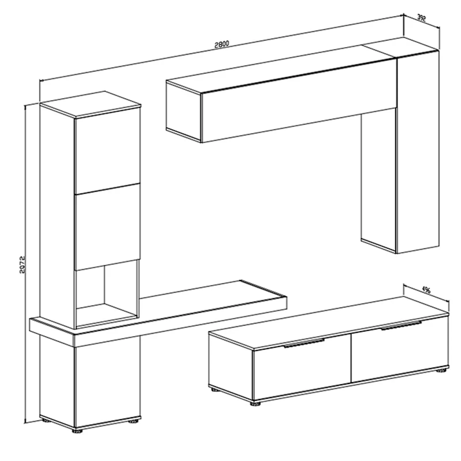 - Dimensioni totali: L.280 x H.207 x P.50 cm