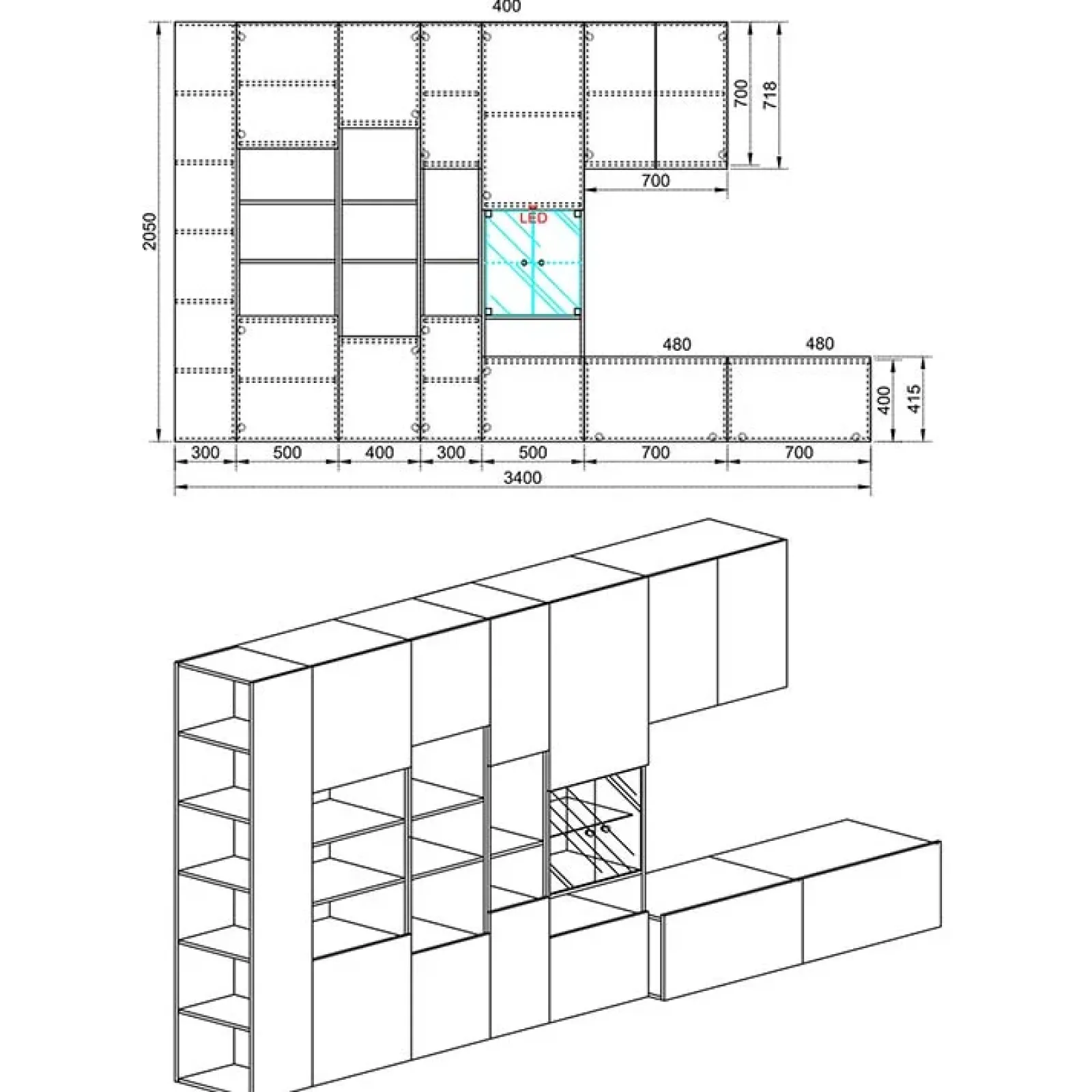 - dimensioni totali: L.340 x H.205 x P.48,5 cm