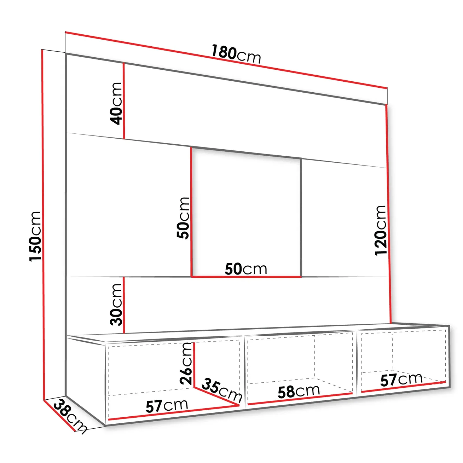 | Dimensioni totali | L.180 x H.150 x P.38cm |