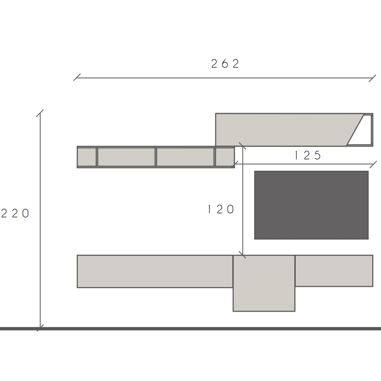 | Dimensioni totali | L.262 x H.220 x P.30 cm |