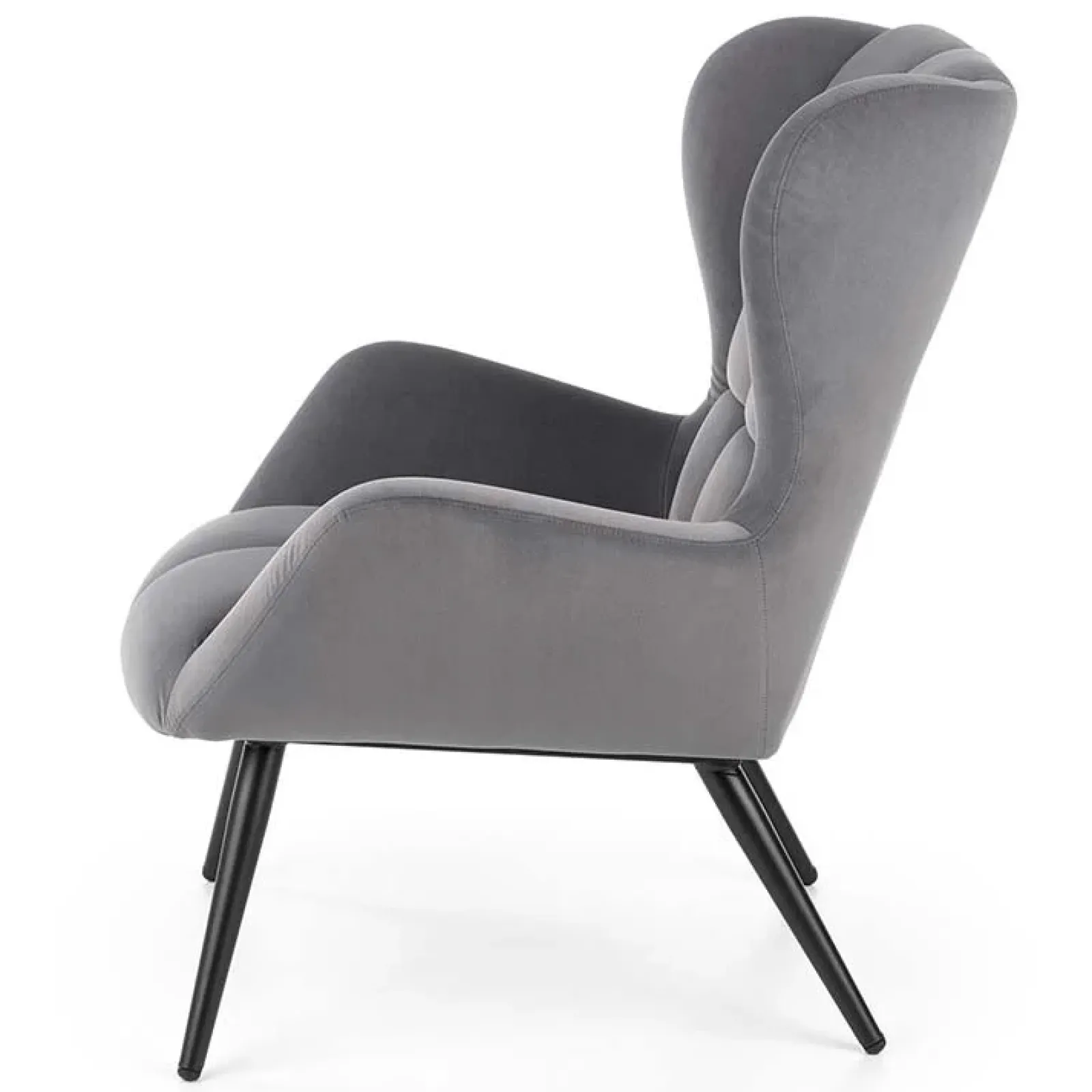Poltrona imbottita Polly in velluto grigio: una poltrona dallo stile nordico, che saprà regalarti comfort e benessere nei tuoi momenti di relax!