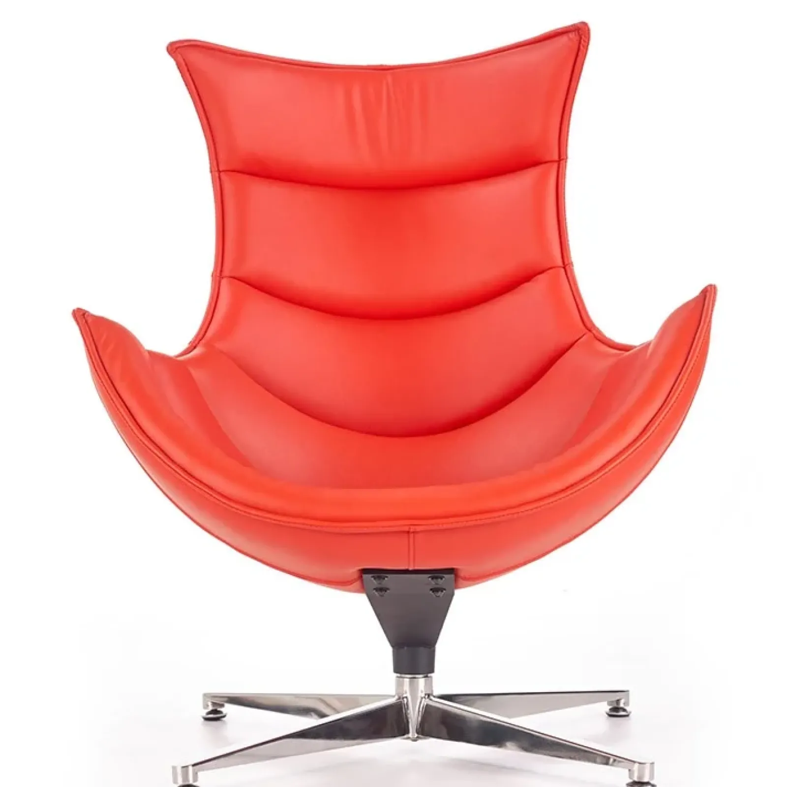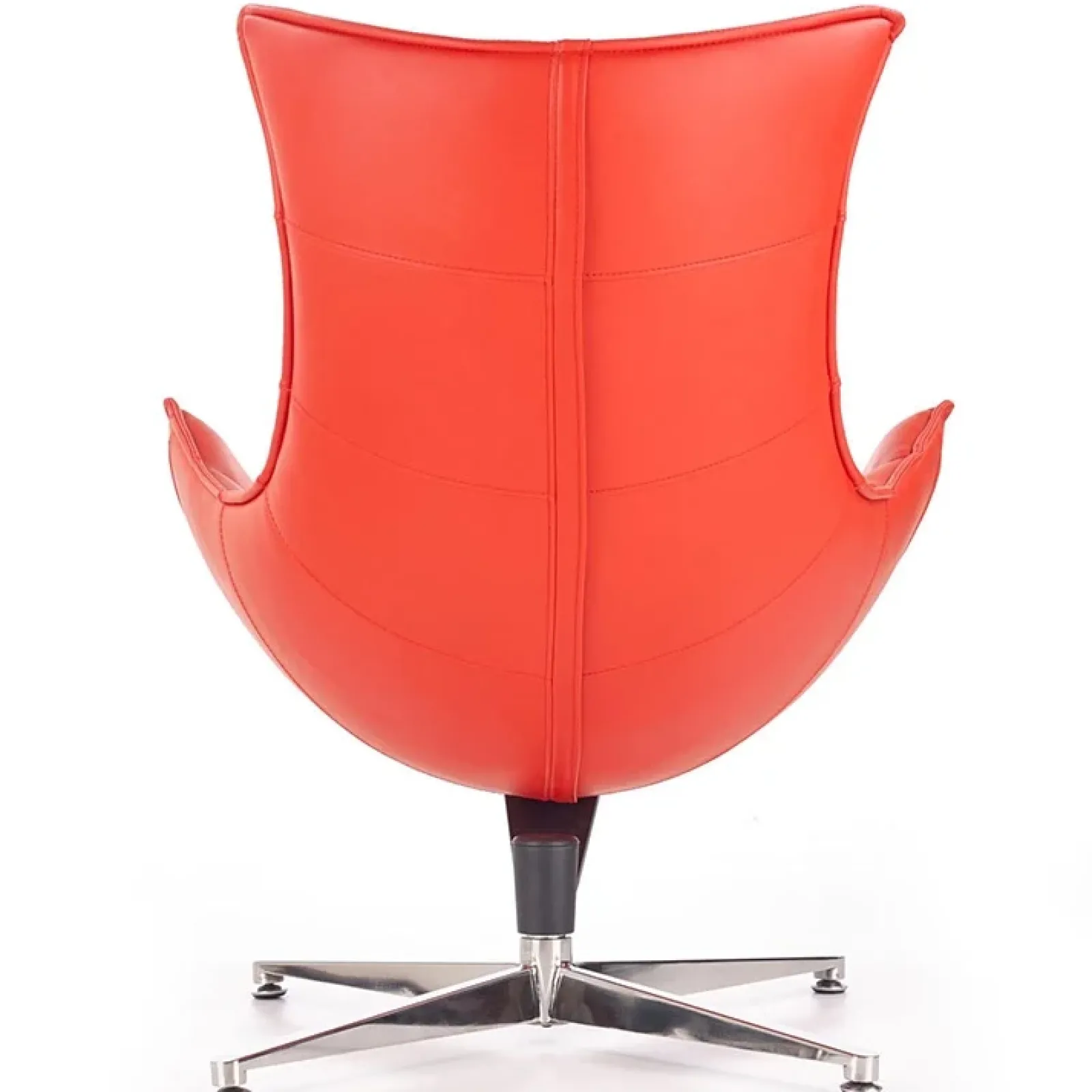 Presenta un’ampia base cromata a stella e rivestimento in ecopelle rossa.