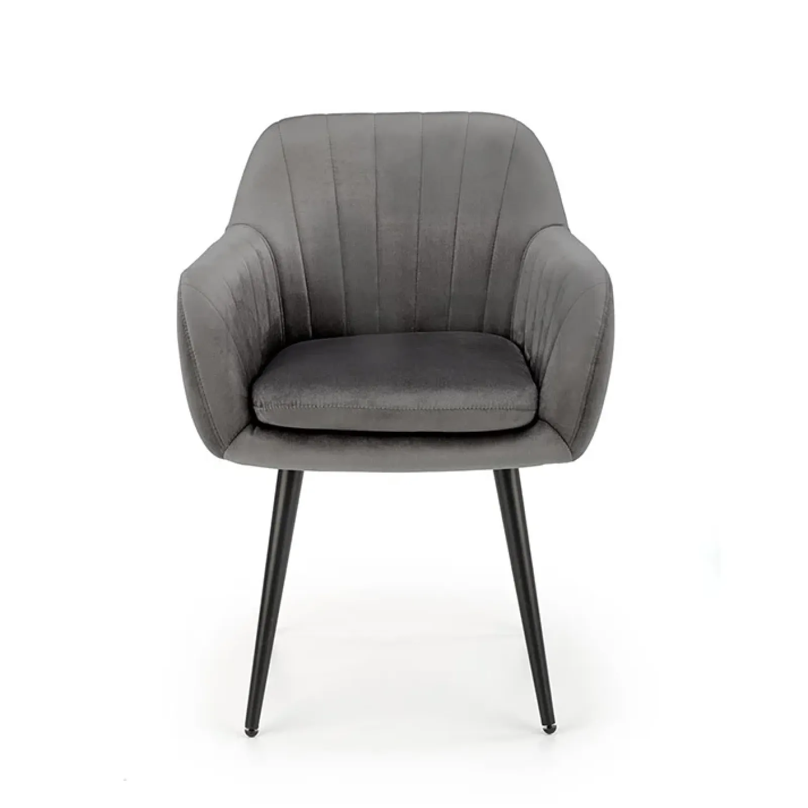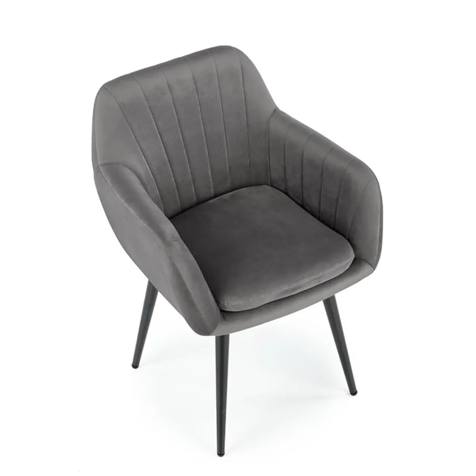 Rivestita in un morbido velluto grigio scuro, regala una piacevole sensazione al tatto e un colpo d’occhio sofisticato. I braccioli avvolgenti e la seduta generosa offrono un comfort superiore, ideale per cene lunghe e conversazioni senza fretta.