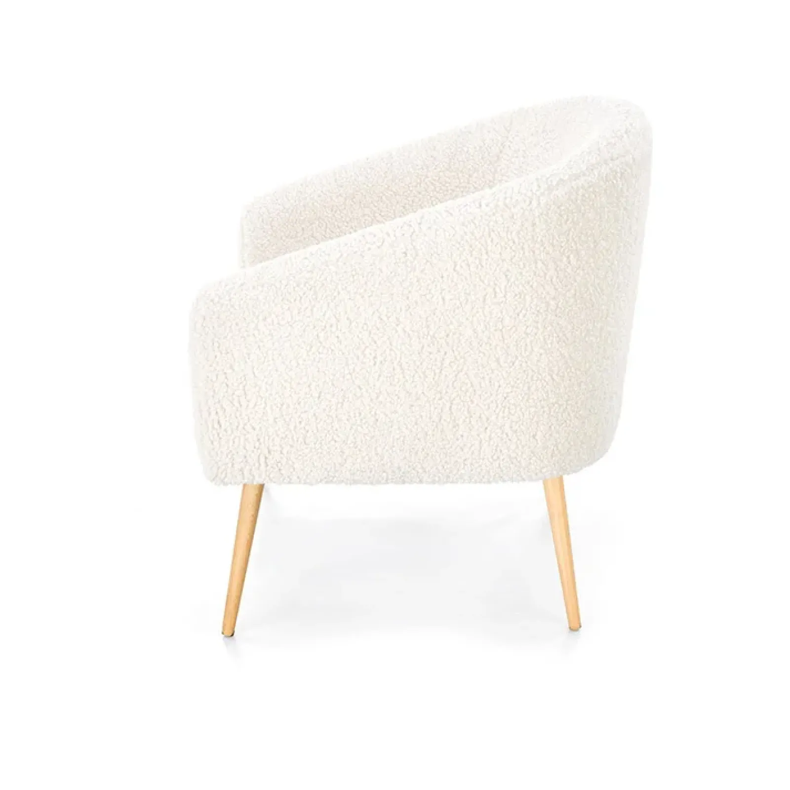 Poltrona design tessuto bouclè bianco crema legno Alaska