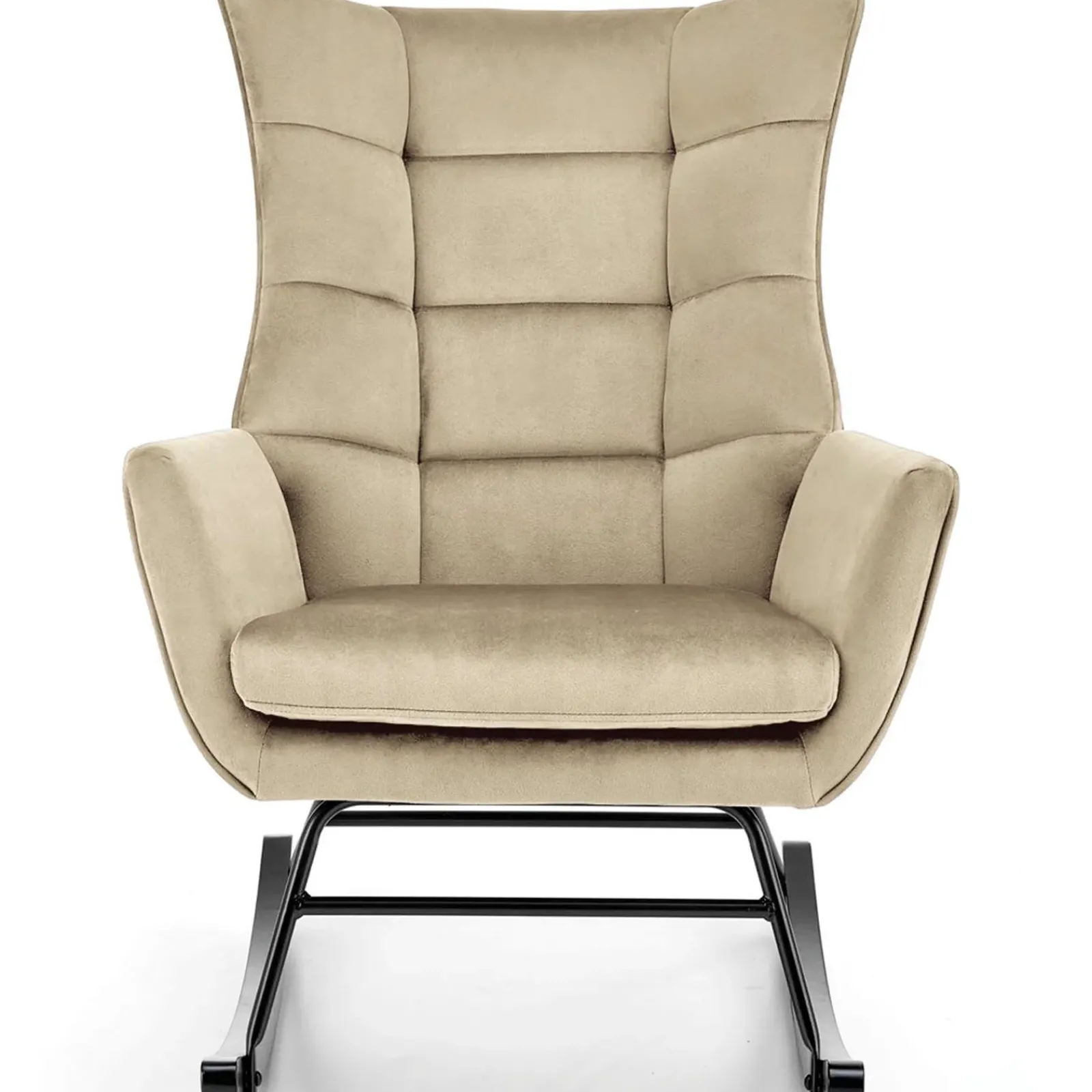 Poltrona a dondolo imbottita in velluto beige Nanna