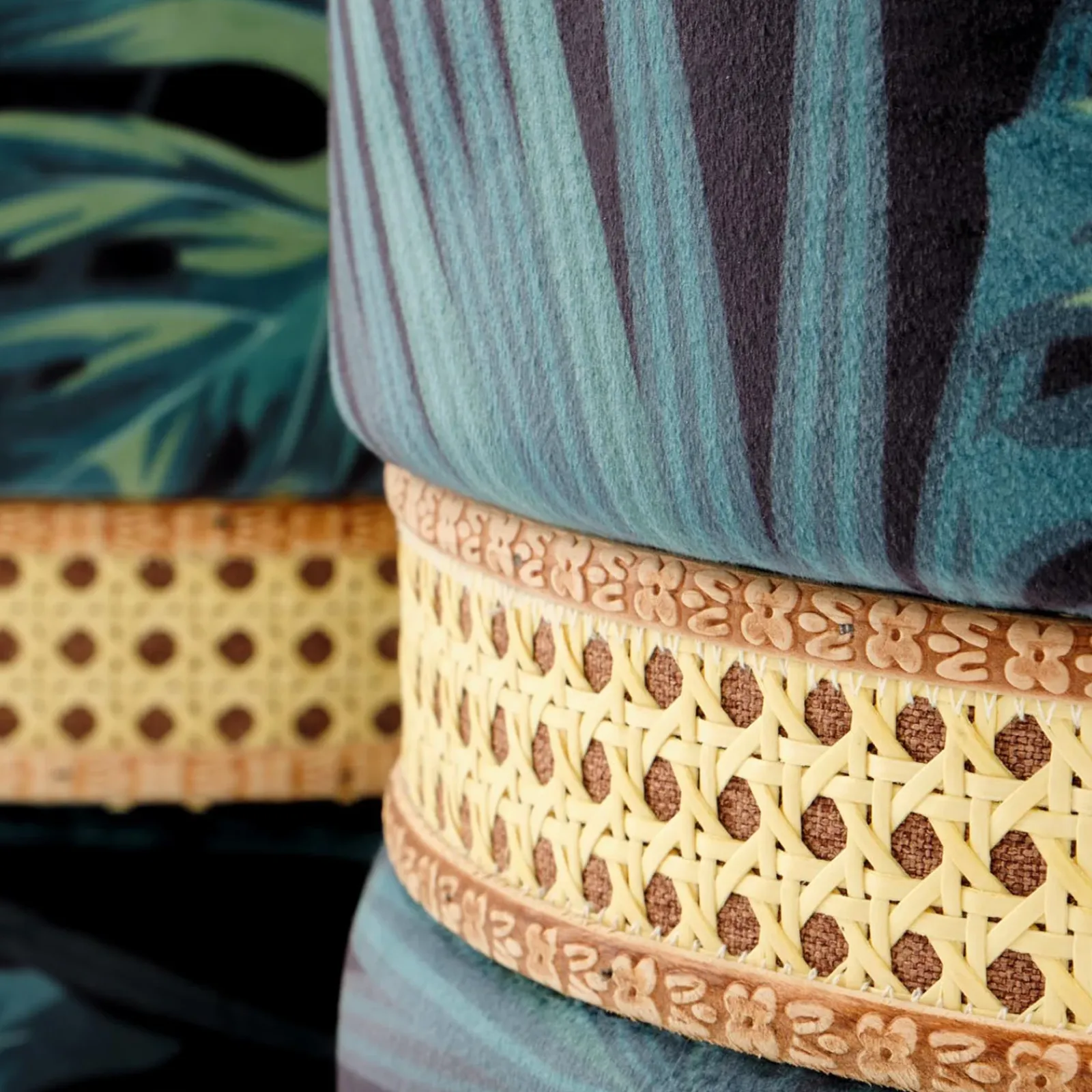 Completati da una fascia decorativa effetto rattan, i pouf Thalia sono perfetti per chi cerca soluzioni d’arredo versatili senza rinunciare allo stile.
