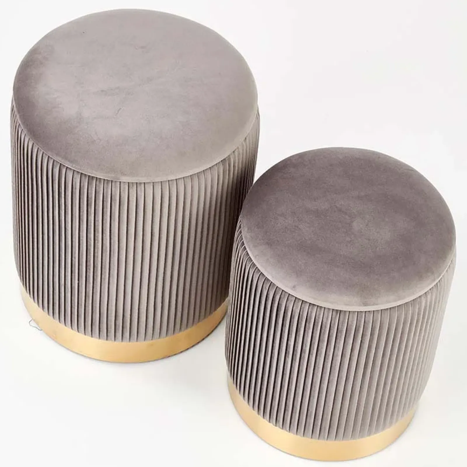 Garnero Arredamenti Pouf-Set 2 pouf rotondi contenitore in velluto acciaio cromato oro Cubal Grigio – Oro