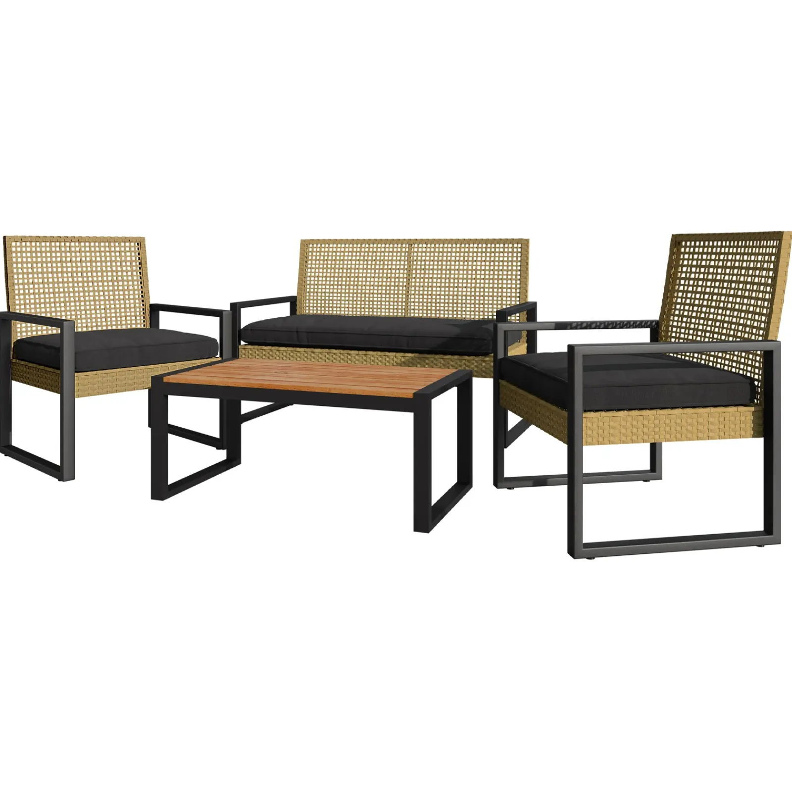 Salotto da giardino 4 posti con cuscini e tavolino acacia nero Timo