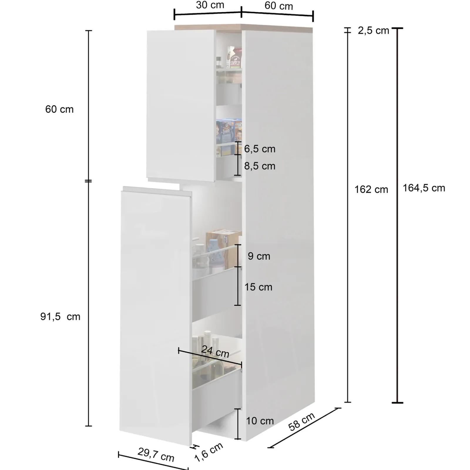 Dispensa cucina 30x165cm scorrevole bianco lucido grigio pietra Gourmet