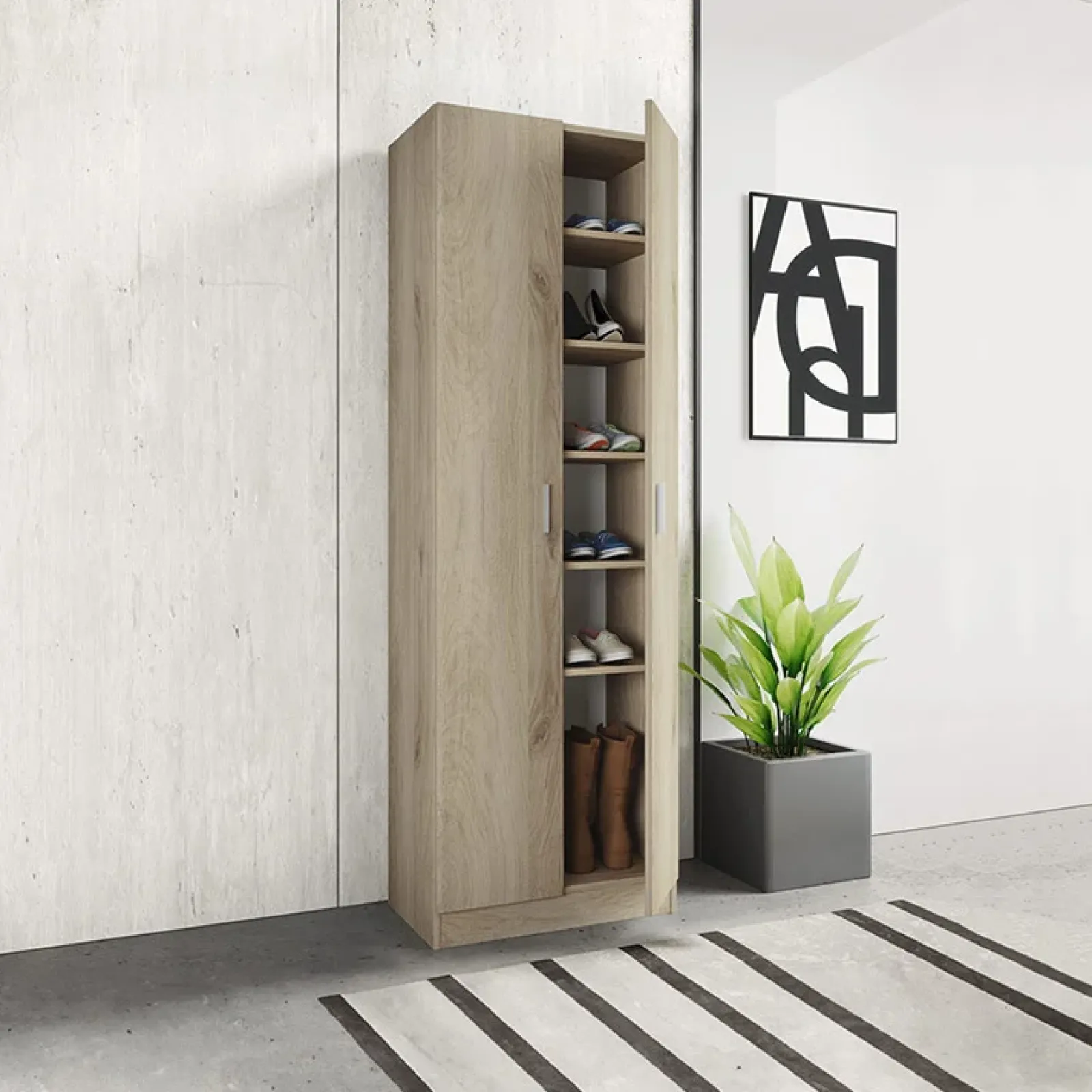 Garnero Arredamenti Scarpiere E Cassepanche|Scarpiere-Armadio scarpiera 59x181h cm 2 ante moderna da ingresso rovere chiaro Max