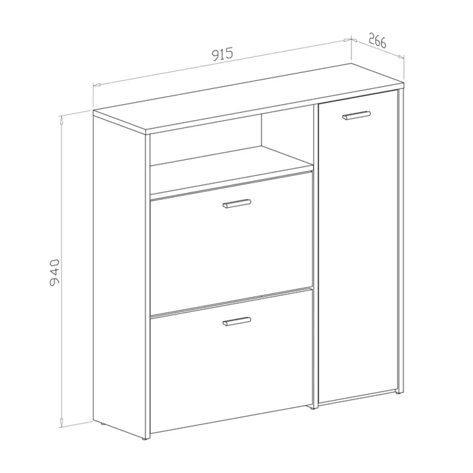 Ampio e capiente, è dotato di: due ante a ribalta adatte per riporre le scarpe, un’anta battente con all’interno due comodi ripiani ed un vano a giorno; spazio ideale per ottimizzare al meglio ogni spazio.
