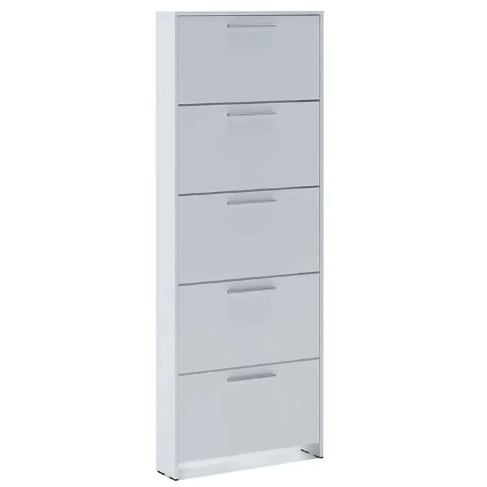 La scarpiera Benton è composto da cinque ante ribaltabili. Elegante e dal design moderno, questa scarpiera si abbina perfettamente a diversi tipi di arredamento. È realizzata con pannelli di melaminico, che assicurano una lunga durata nel tempo. Approfitta di questa pratica scarpiera salvaspazio per mantenere le tue scarpe sempre in ordine! Grazie a questa scarpiera si potrà dire addio a disordine, scarpe impolverate, cattivi odori e sporco delle scarpe per casa.