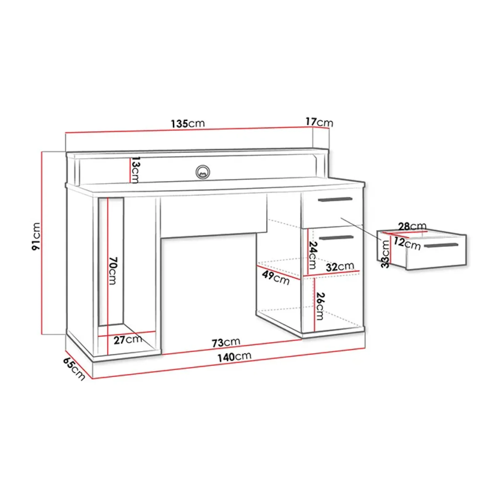 - dimensioni : L.140 x H.91 x P.65 cm