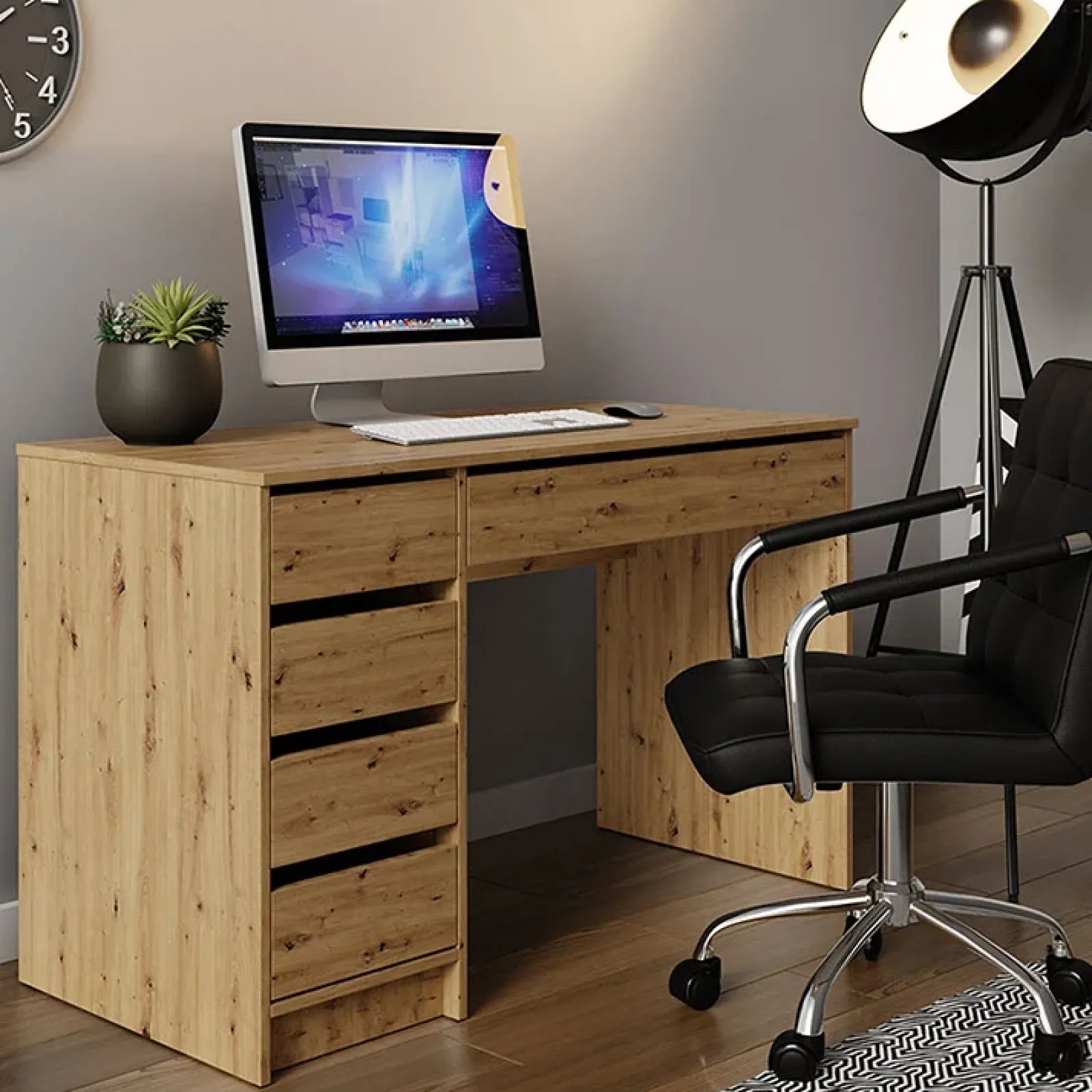 Scrivania ufficio 120x75cm 5 cassetti rovere Blackpool , il suo stile moderno la rende perfetta sia per l’ufficio che per la camera dei tuoi ragazzi.