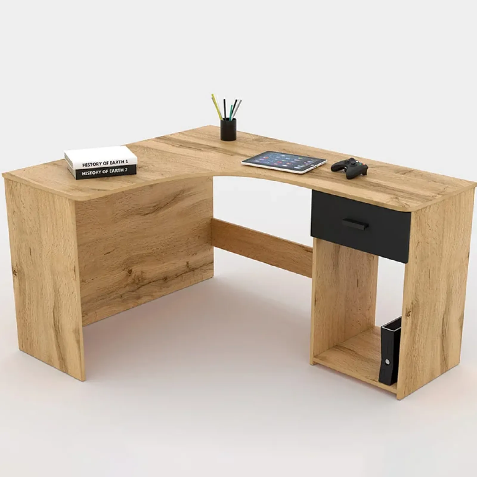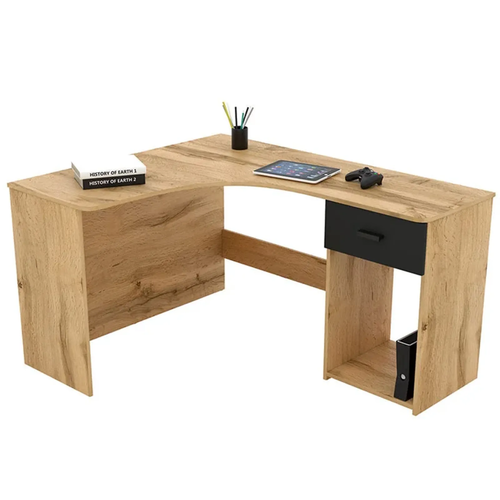 La scrivania è dotata di un cassetto nero 36x13cm e un vano a giorno per avere più spazio per i tuoi documenti e gli articoli di cancelleria.