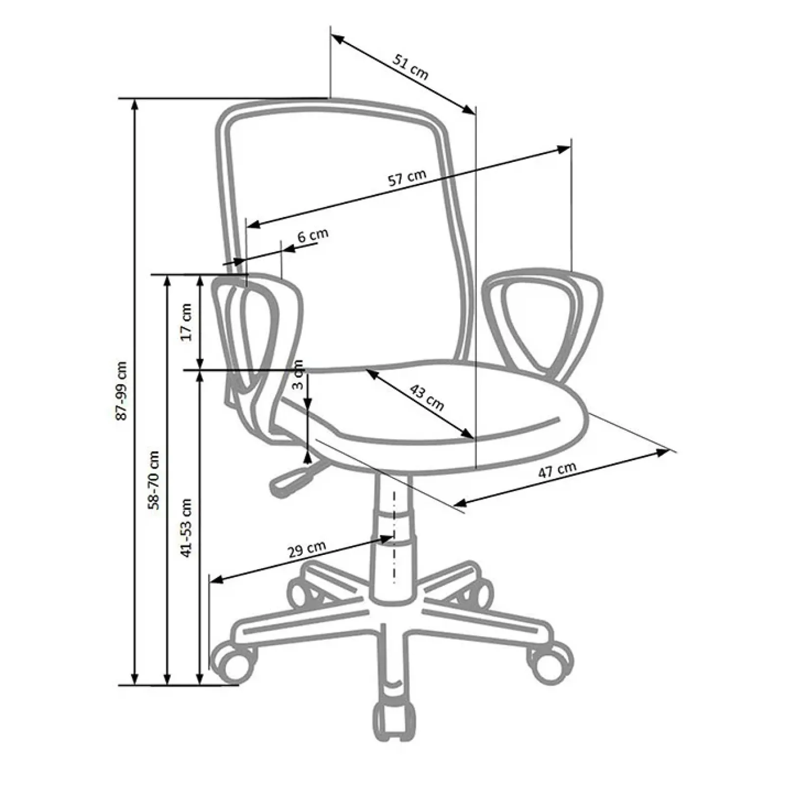 - altezza seduta: 41/53 cm