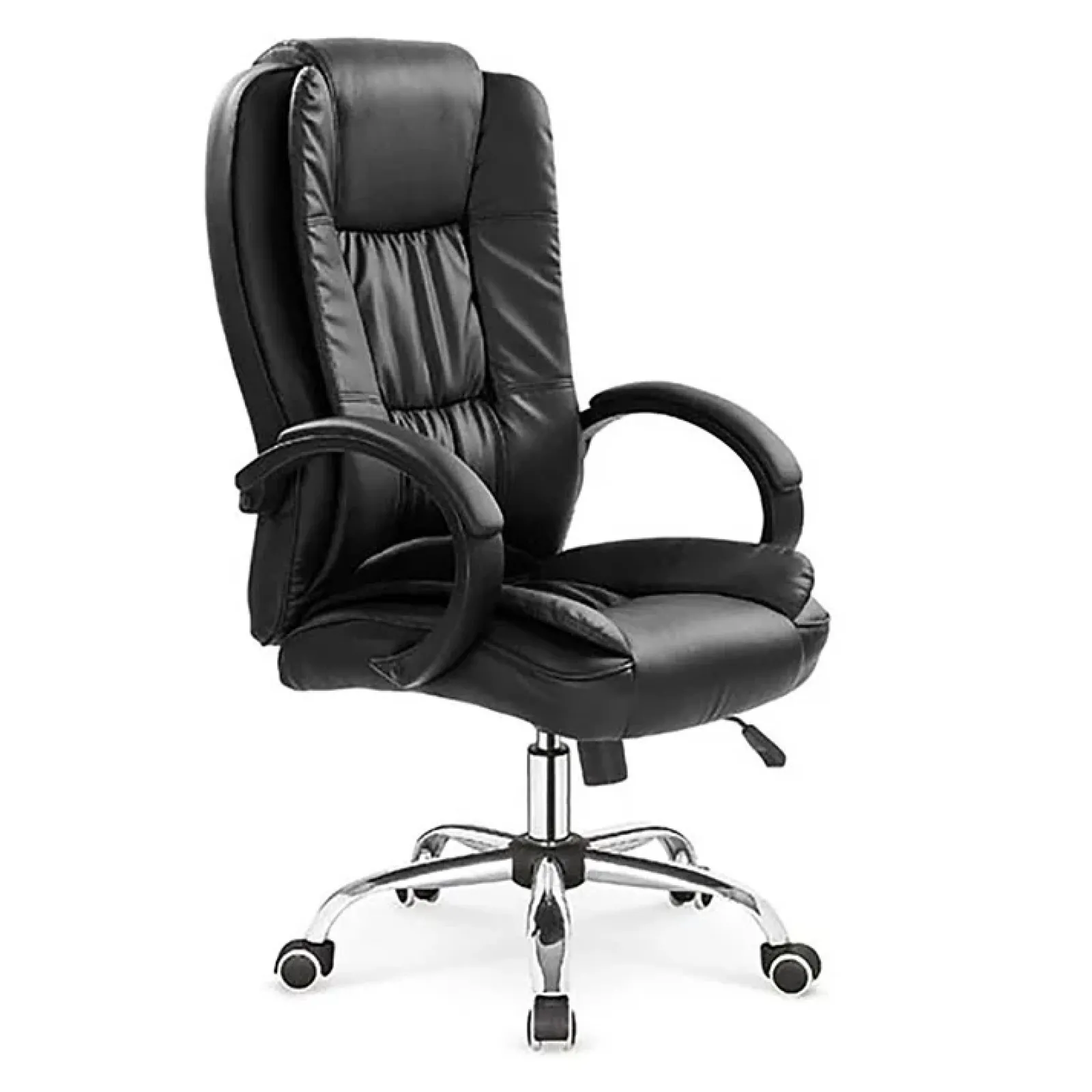 Sedia da ufficio con seduta in ecopelle nera. La sedia è regolabile in altezza.