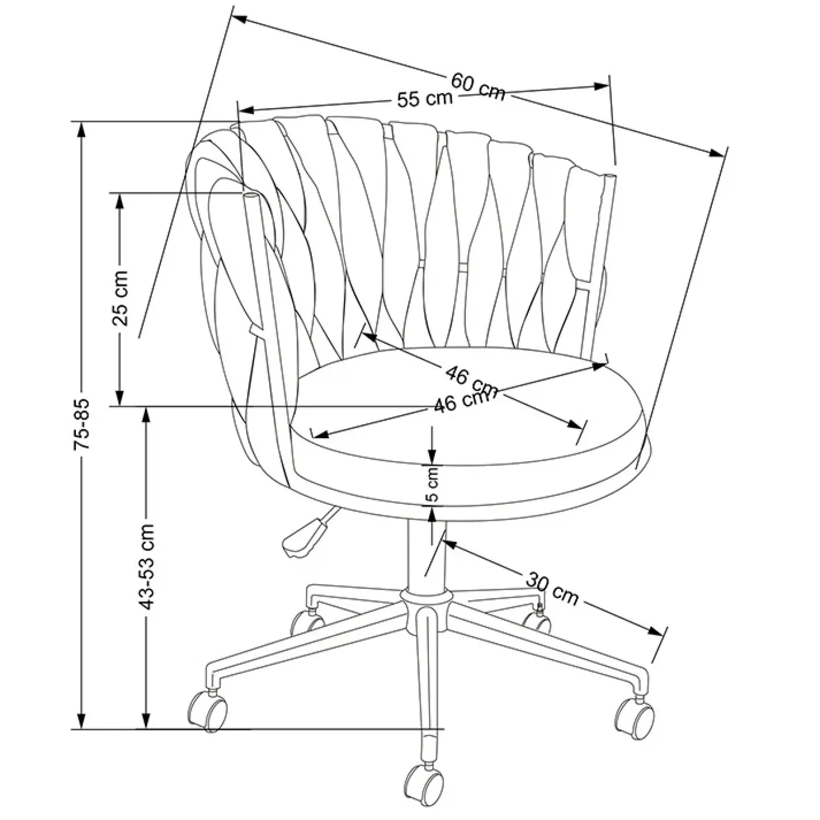 - dimensioni: L 55 x H.75-85 x P. 60 cm