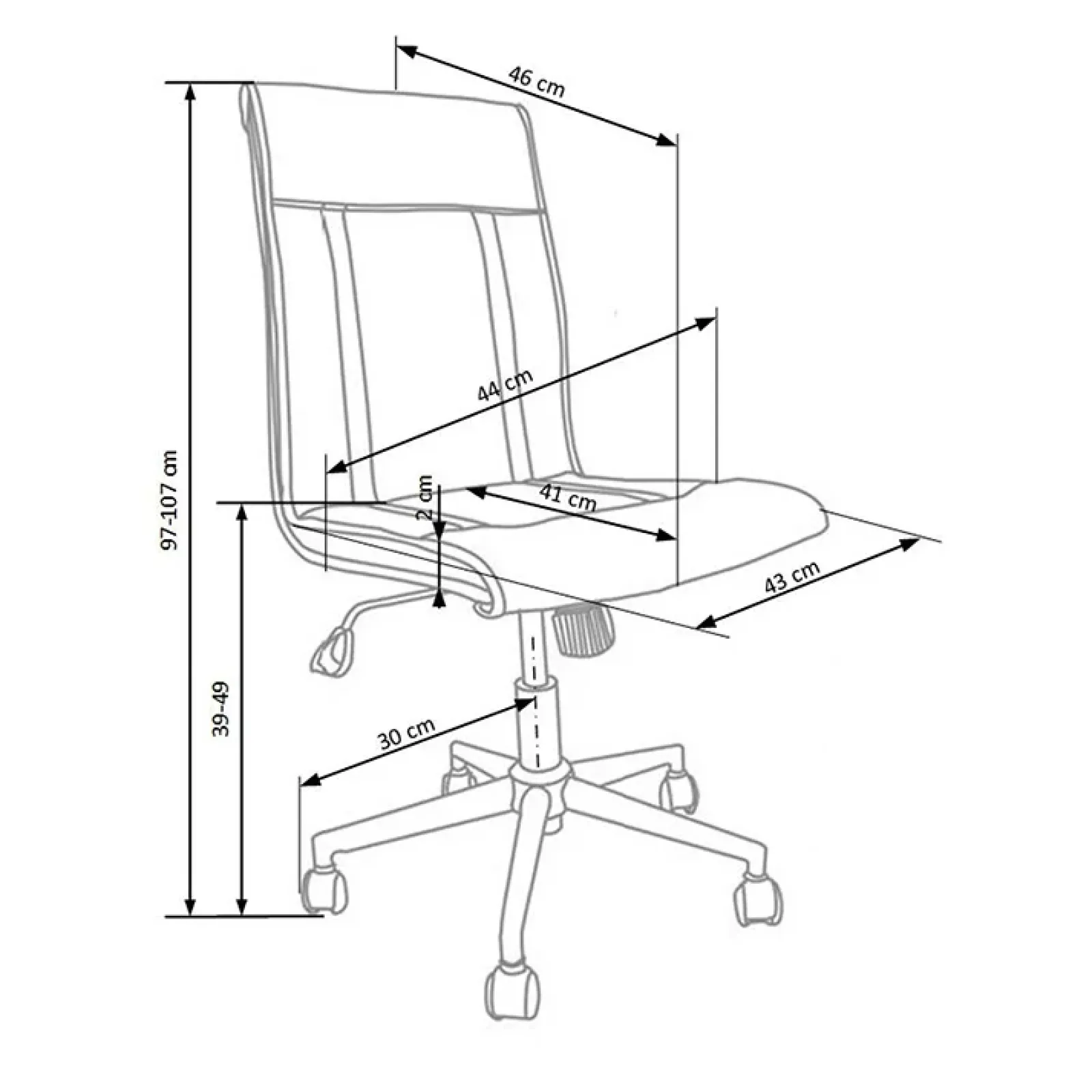 - dimensioni totali : H 97-107 x L 44 x P 46 cm