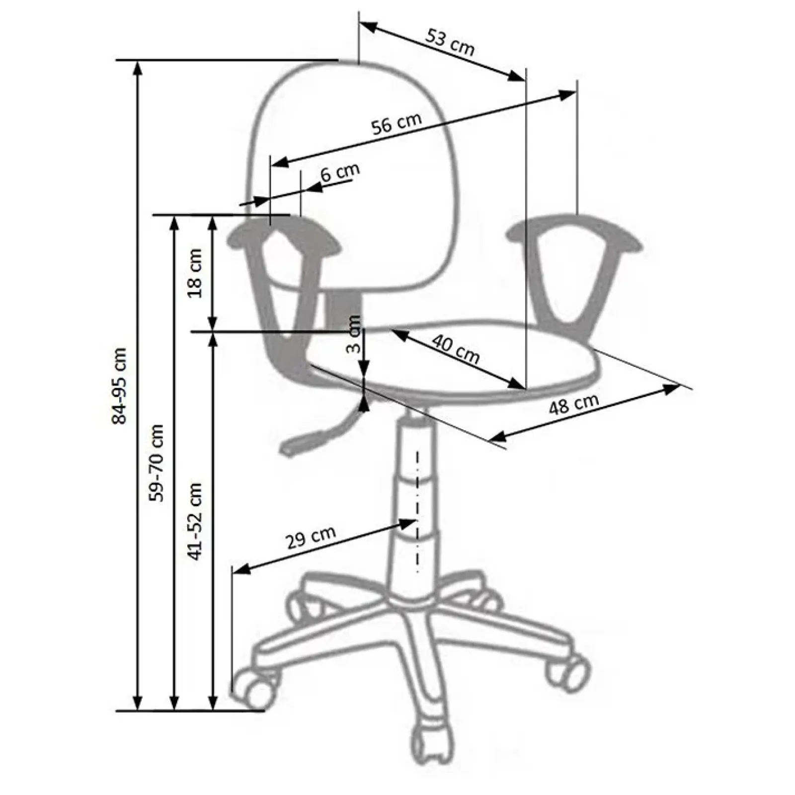 - dimensioni totali: L.56 x H.84-95x P.53 cm