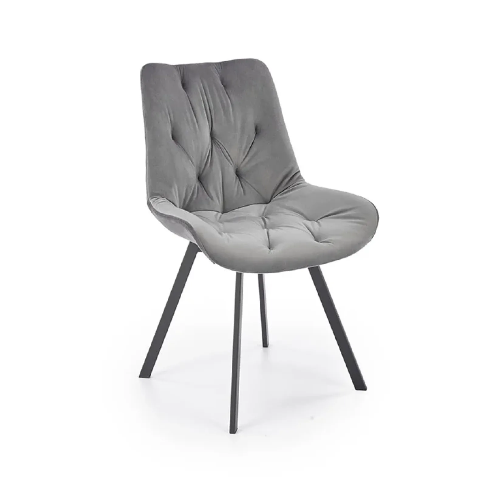La sedia da pranzo Sango coniuga comfort ed eleganza grazie alla sua imbottitura morbida e al rivestimento in velluto grigio nero.