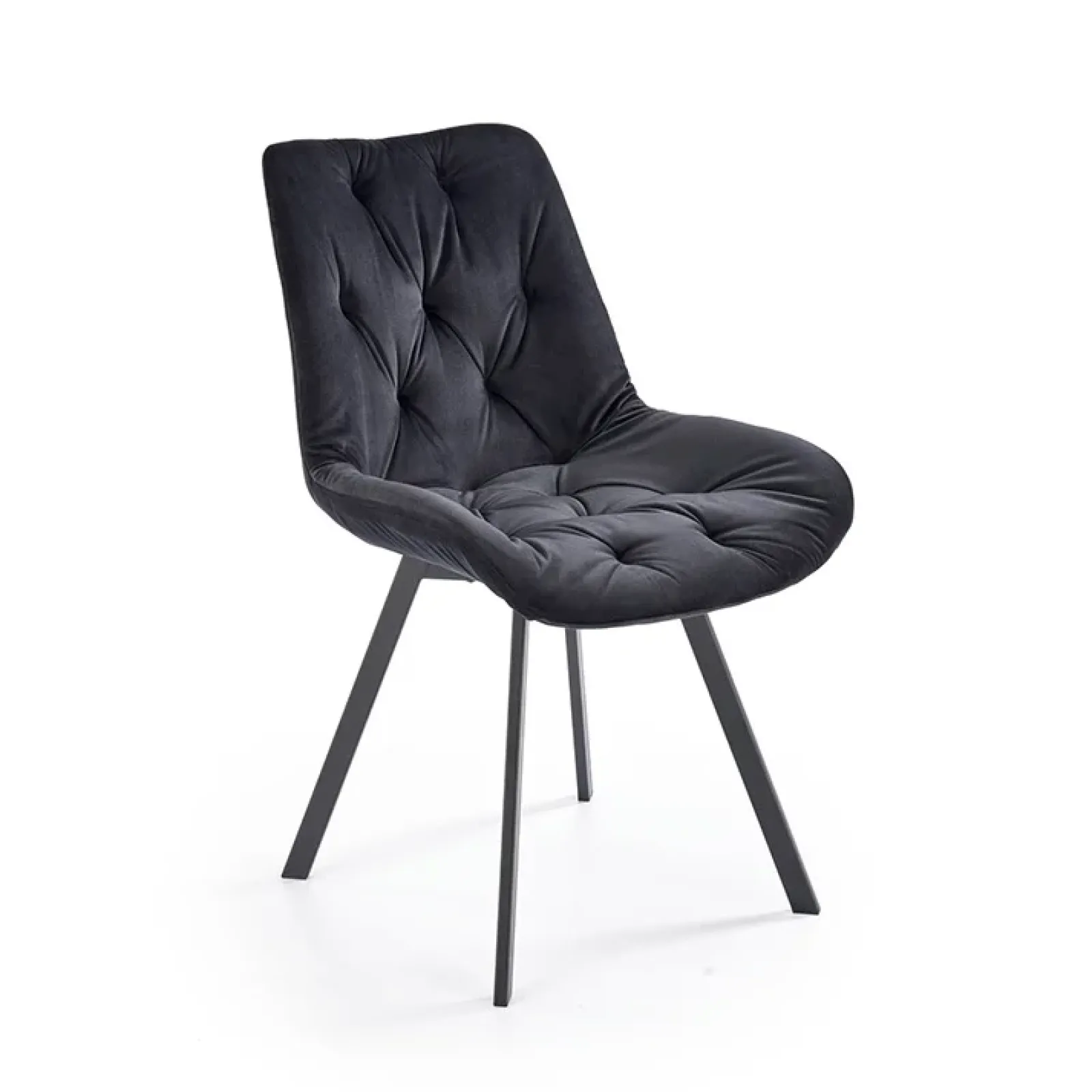 Sedia da pranzo imbottita in velluto nero Sango