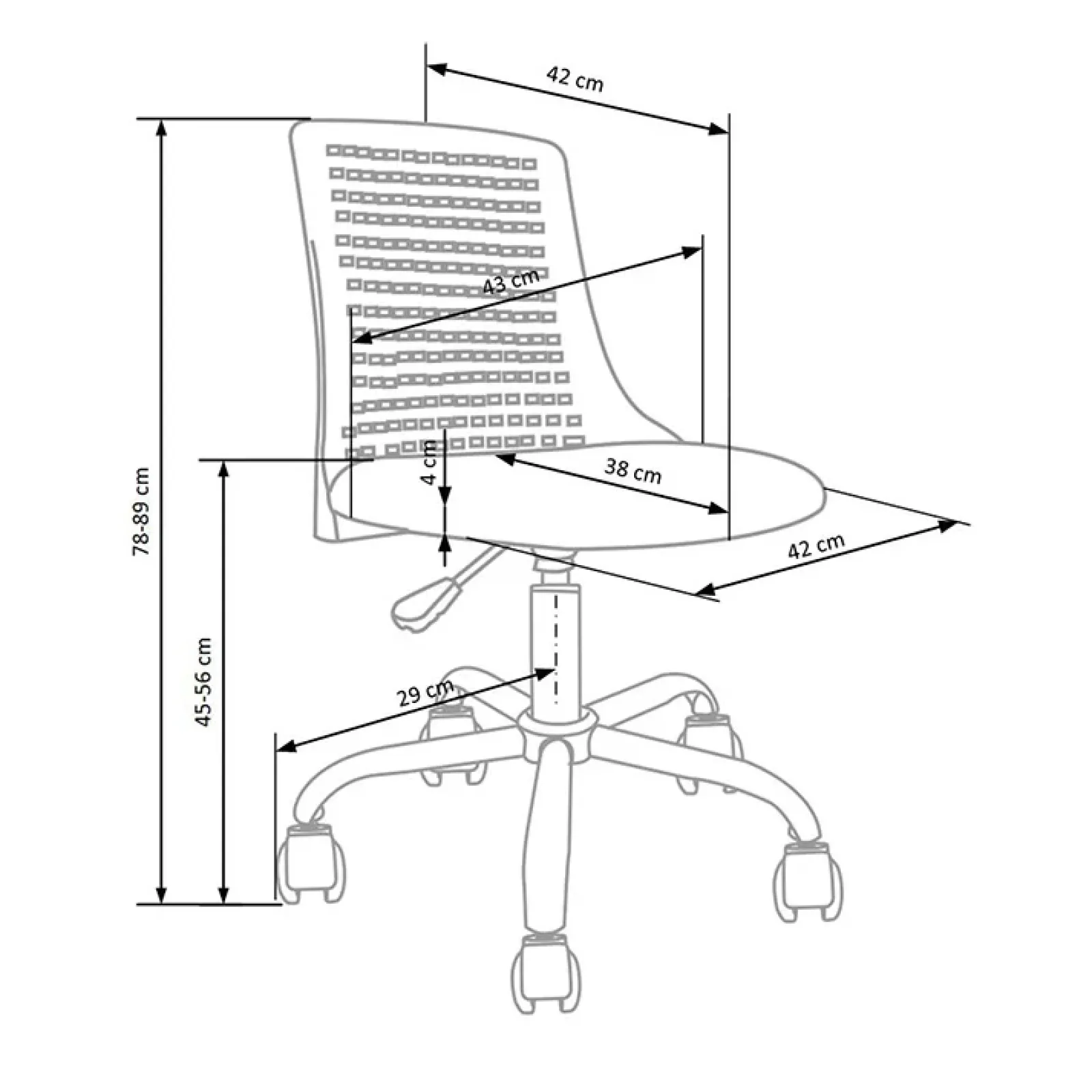 - dimensioni totali: L.43 x H.78-89 x P. 42cm
