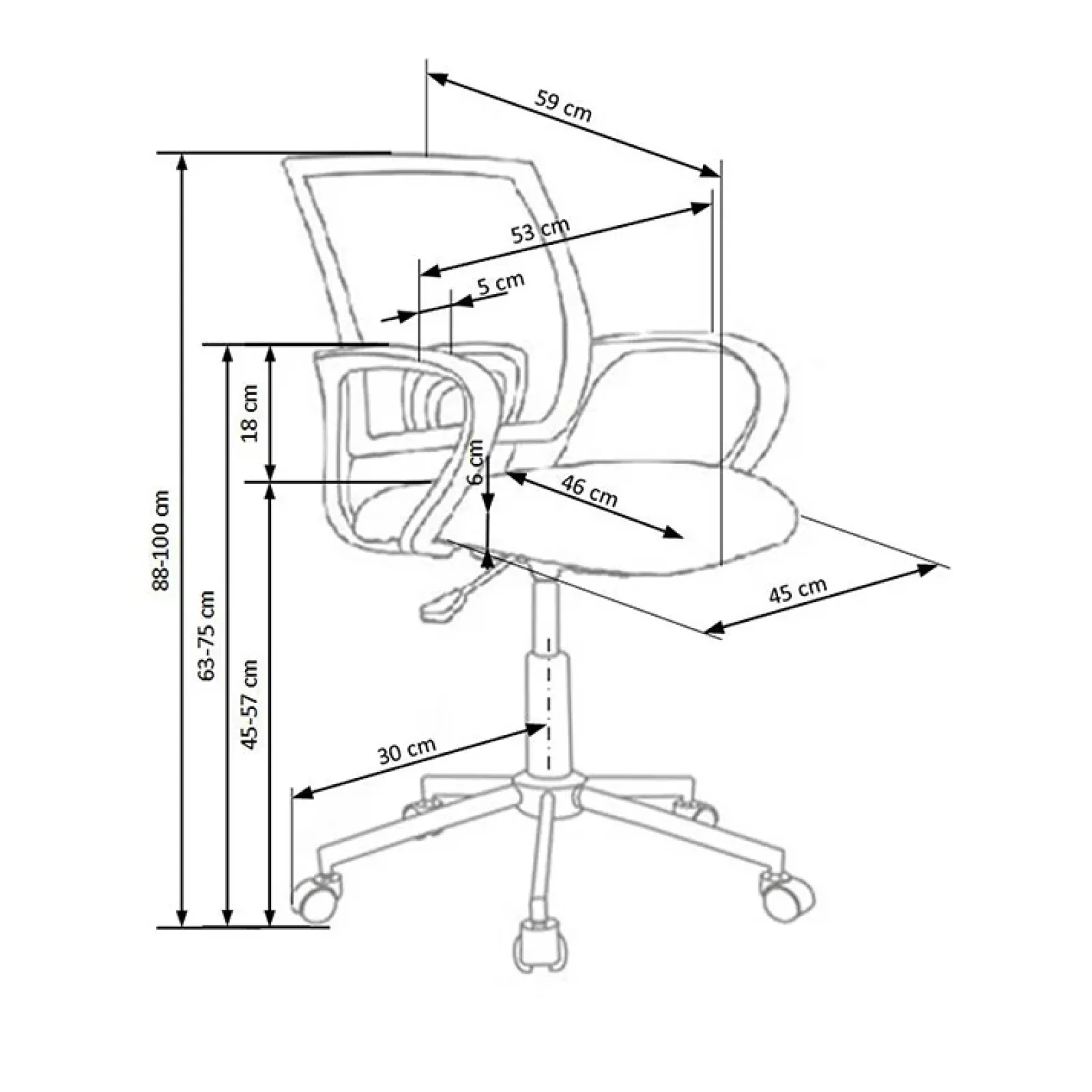 - altezza seduta: 45-57 cm