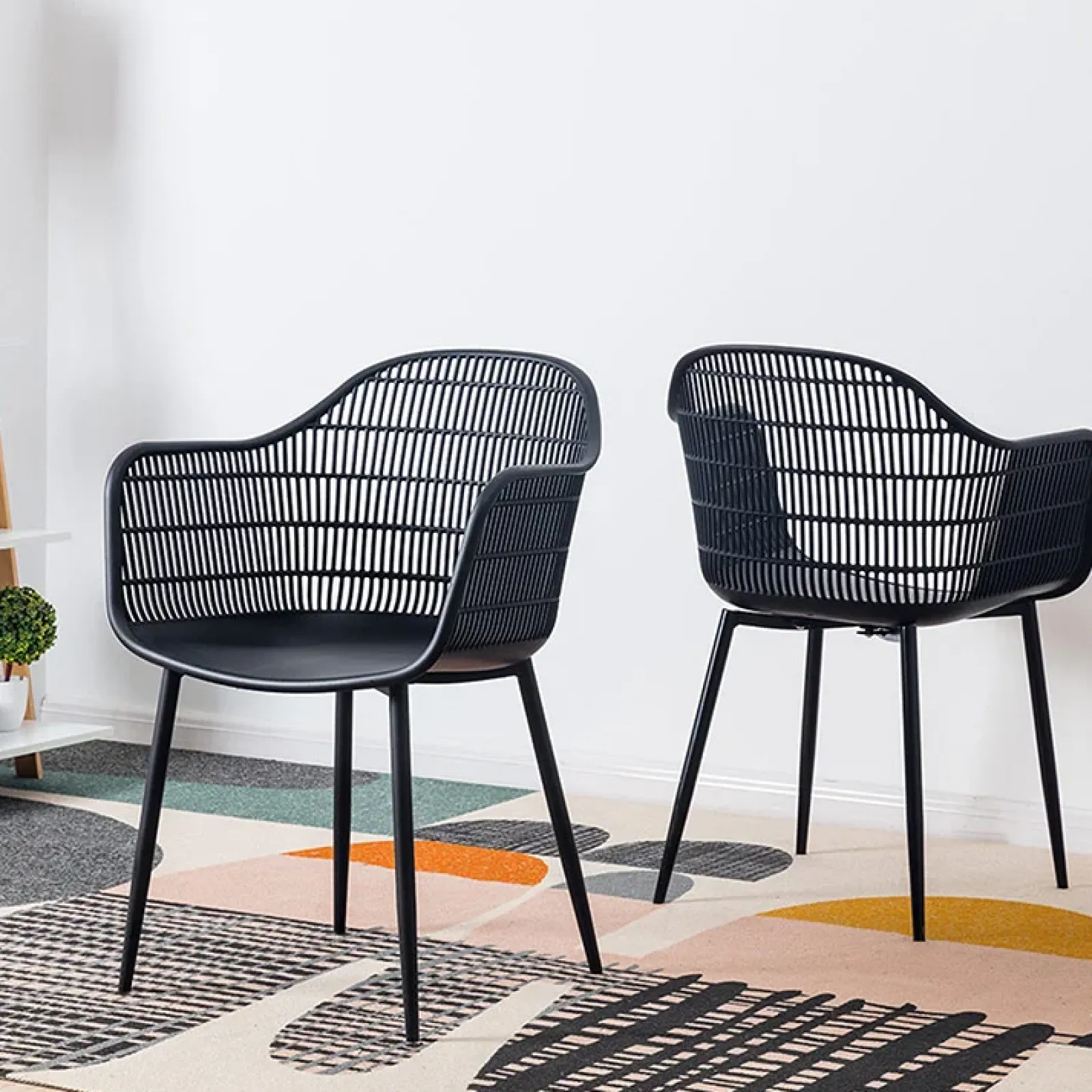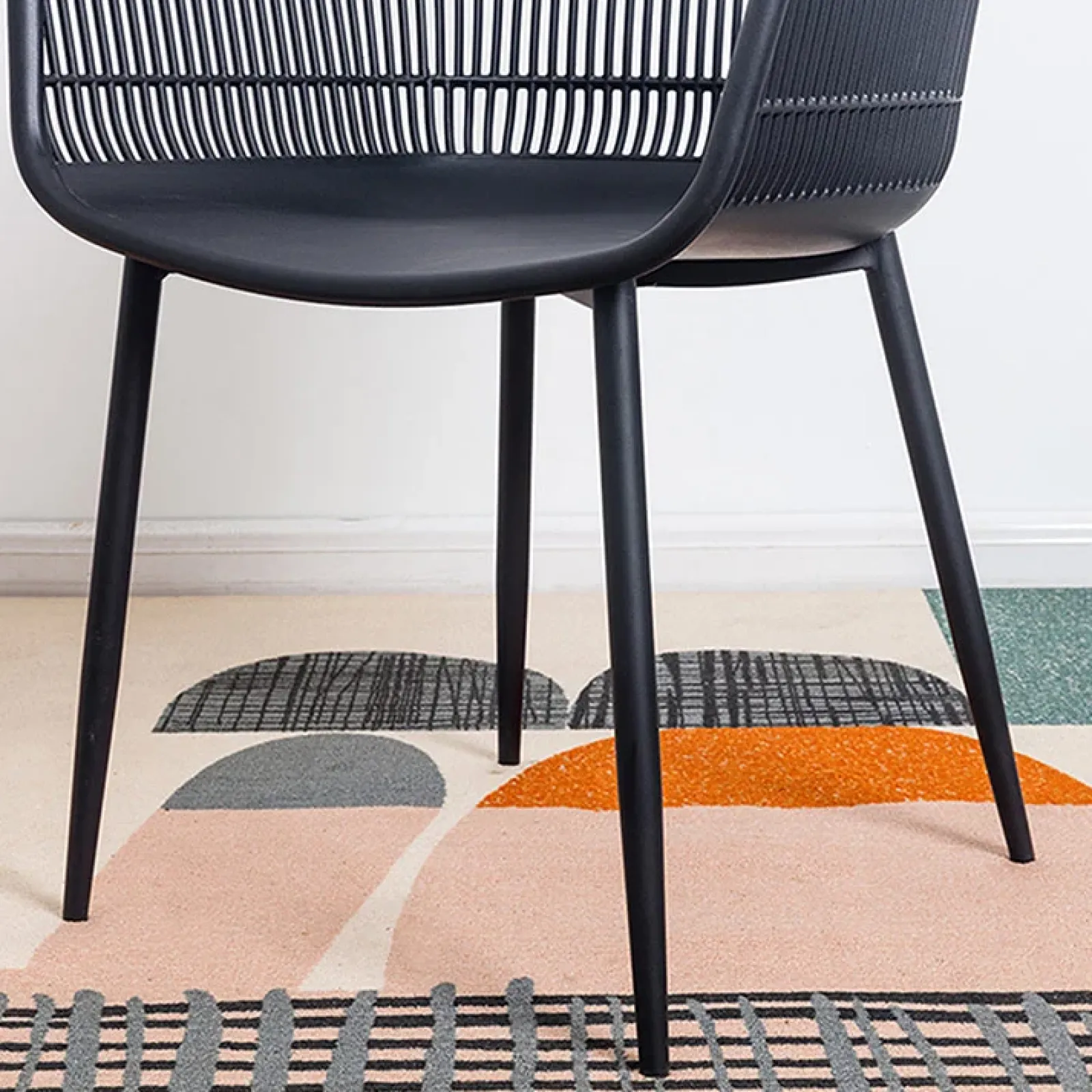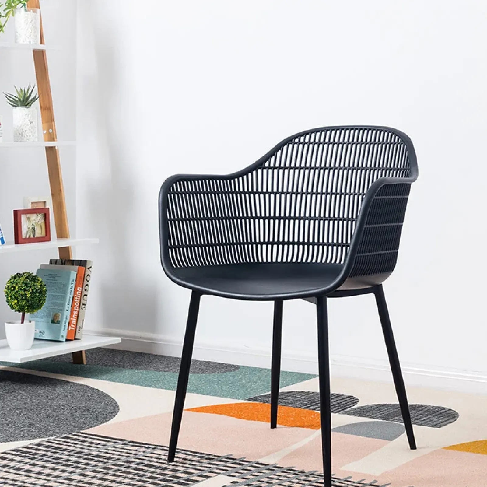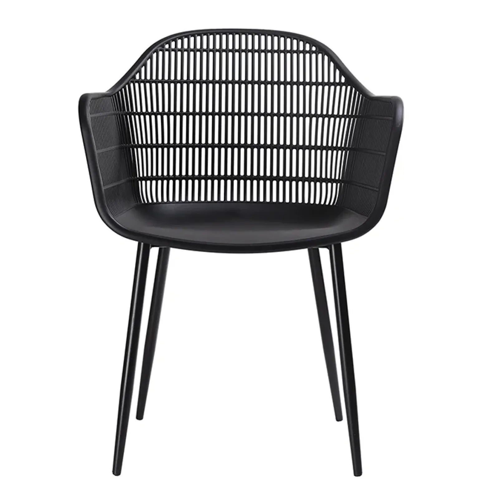 La seduta della sedia da pranzo Granada è realizzata in polipropilene, la base è in metallo. Il design nero opaco della sedia la rendono moderna e raffinata. La sedia è composta da un’ampia seduta con braccioli per un comfort adeguato. Lo schienale presenta un motivo a rete, perfetta per ogni tipo di ambiente.