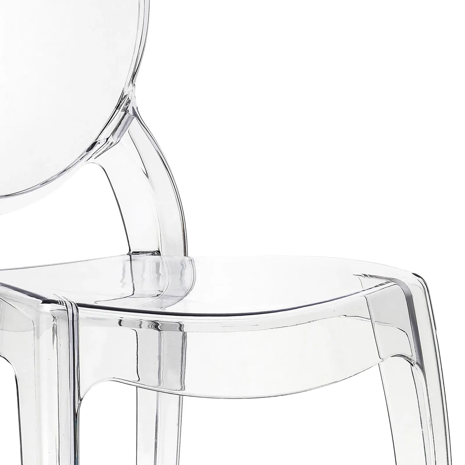 Elisabeth Gihome® è una sedia che saprà sedurvi grazie alle sue forme sinuose e avvolgenti. È realizzata in resistente policarbonato di prima scelta, materiale di qualità a prova di graffi e agenti atmosferici, fatto per durare nel tempo. L’essenza limpida e pulita della sua finitura trasparente ti permette di ottenere una piacevole leggerezza visiva e di dare ampio respiro agli spazi. La trasparenza del materiale consente di abbinare Elisabeth Gihome® a qualsiasi complemento d’arredo e di combinarla con qualsiasi materiale, sia esso legno, pietra, metallo o plastica. In qualsiasi situazione, il suo design minimalista renderà raffinato l’ambiente e illuminerà la stanza. Una caratteristica importante di Elisabeth Gihome® è che si può impilare, in modo da occupare poco spazio quando non serve. Si tratta inoltre di una sedia leggera e duratura, che può essere spostata facilmente e senza difficoltà.