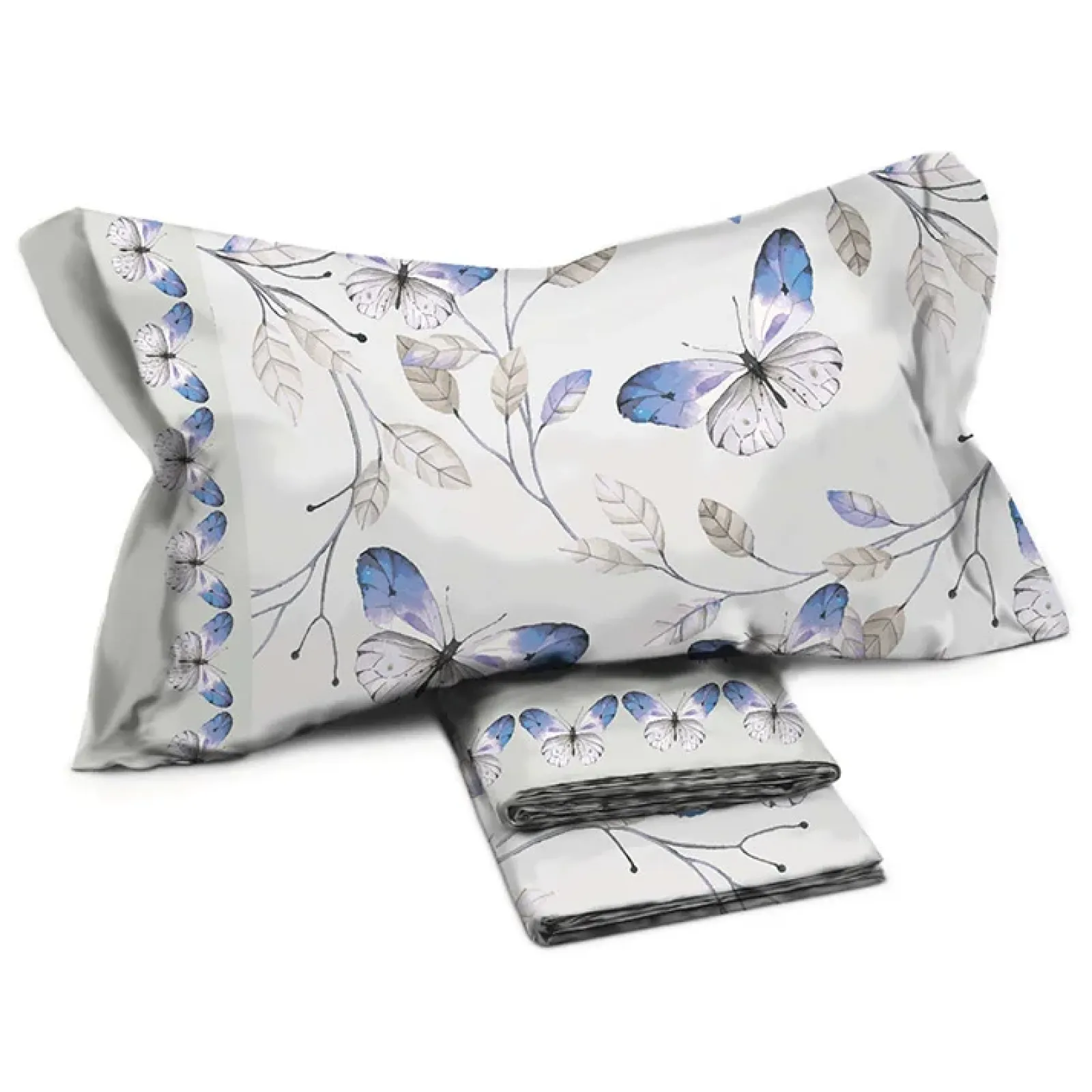 Garnero Arredamenti Set Lenzuola|Set Lenzuola-Set lenzuola matrimoniali in cotone fantasia farfalle bianco blu Cefalo