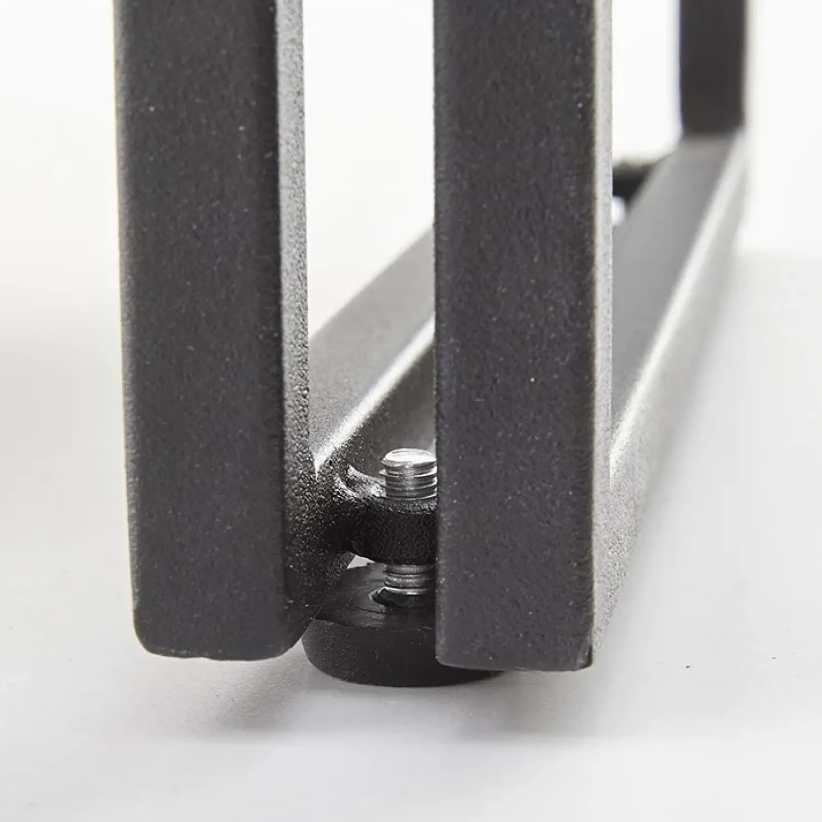 La struttura è realizzata in acciaio verniciato nero con il piano del tavolo, seduta e schienale delle sedie in legno MDF rovere.