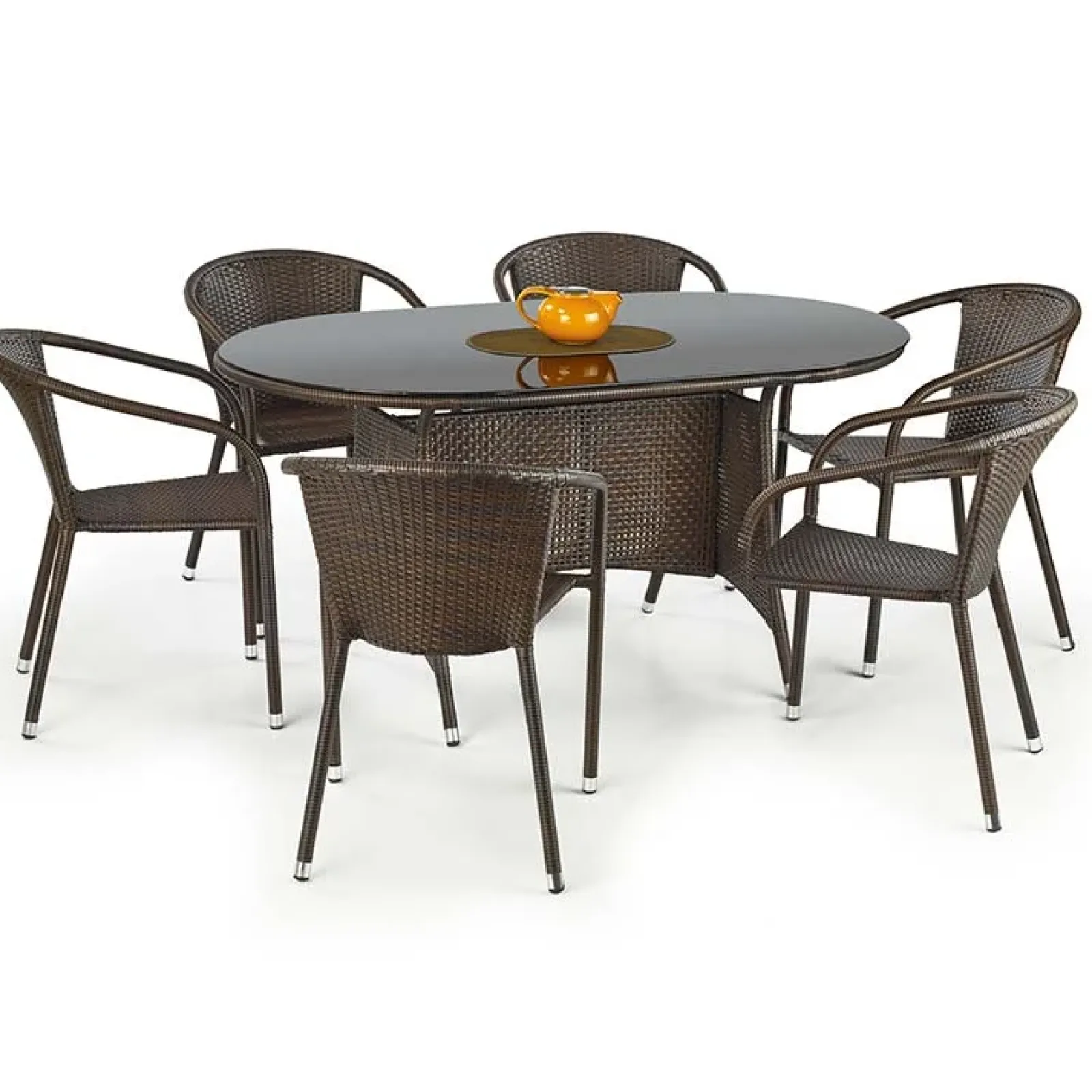 Garnero Arredamenti Set Tavolo E Sedie Da Giardino-Set tavolo in vetro 150x90cm + 6 sedie da giardino in rattan marrone acciaio cromato Cubby