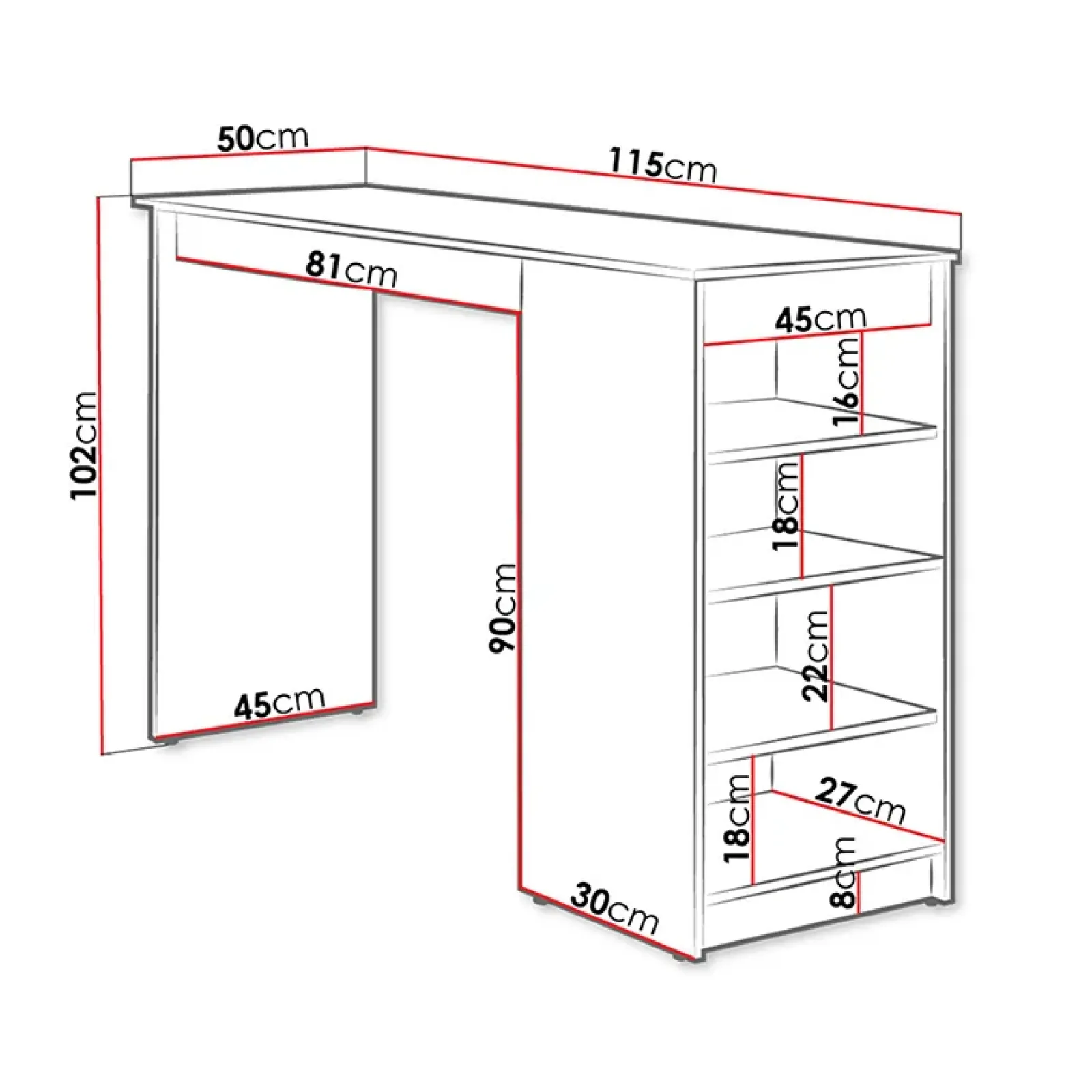 - dimensioni totali: L.115 x H.102 x P.50 cm