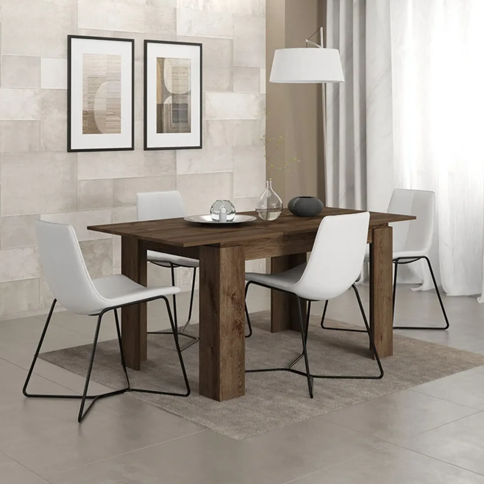 Proposto nell’originale finitura rovere scuro, è un tavolo allungabile, ideale per improvvisare pranzi o cene in compagnia di amici o parenti.