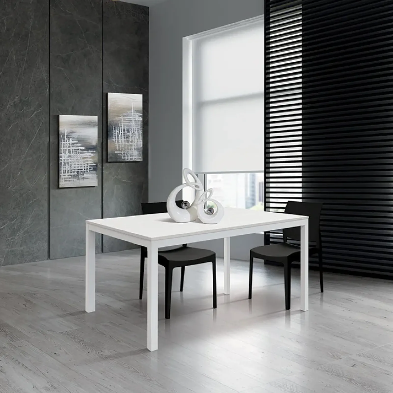 Tavolo 160/220 cm allungabile bianco frassinato metallo bianco Larkin, il tavolo che puoi utilizzare ovunque tu voglia. In soggiorno o in sala da pranzo per regalare un tocco di classe in più al tuo arredo.